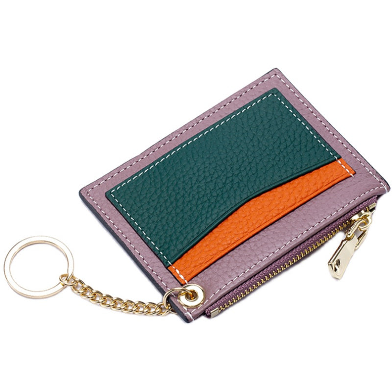 Style: Slim Womens Patchwork Red Leather Card Wallets with Keychain Cute Zip Card Holder Wallet for Women