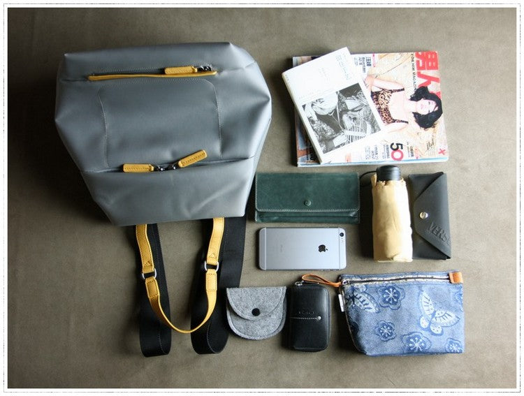Slots: 2 main slots, 1 back zip slot, 2 outside zip slots, 1 phone pocket, 1 wallet pocket, 1 inside slot
