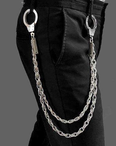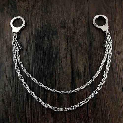 One of the most distinctive features of this wallet chain is the handcuff clips at both ends. These handcuff clips not only provide a secure attachment to your wallet, jeans, or pants but also add an edgy, unconventional twist to the accessory. The handcuffs symbolize rebellion and a break from conformity, aligning perfectly with biker and punk subcultures. This bold detail transforms the chain from a simple functional item into a statement piece that conveys a sense of toughness and individuality.