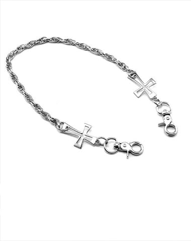 Style: 20'' SOLID STAINLESS STEEL DOUBLE-HEADED CROSS BIKER SILVER WALLET CHAIN LONG PANTS CHAIN SILVER jeans chain jean chain FOR MEN