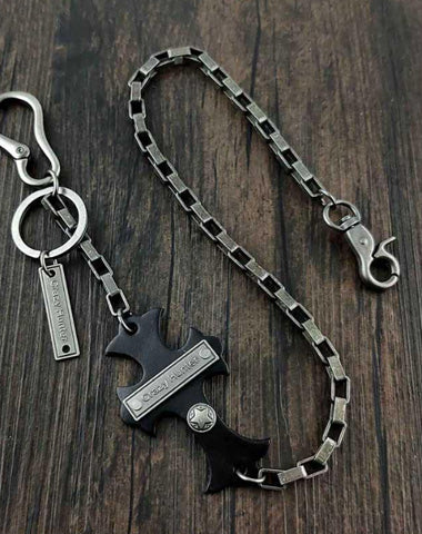 Style: 24'' HEAVY METAL CROSS BIKER SILVER WALLET CHAIN LONG PANTS CHAIN SILVER jeans chain jean chain FOR MEN