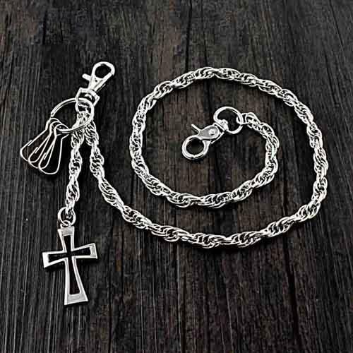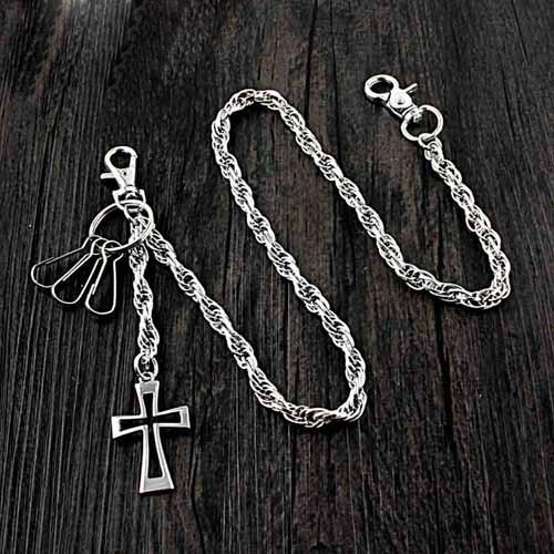 26'' Metal CROSS BIKER SILVER WALLET CHAIN LONG PANTS CHAIN SILVER jeans chain jean chain FOR MEN