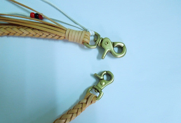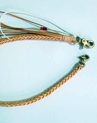 This is handmade natural Italian Vegetable Tanned leather?braided Chain with Clip for wallet/purse/clutch.The chain is 8pc,color is beige.This chain is about 50 cm long and diameter of a