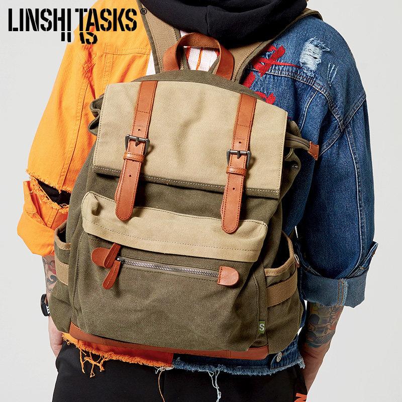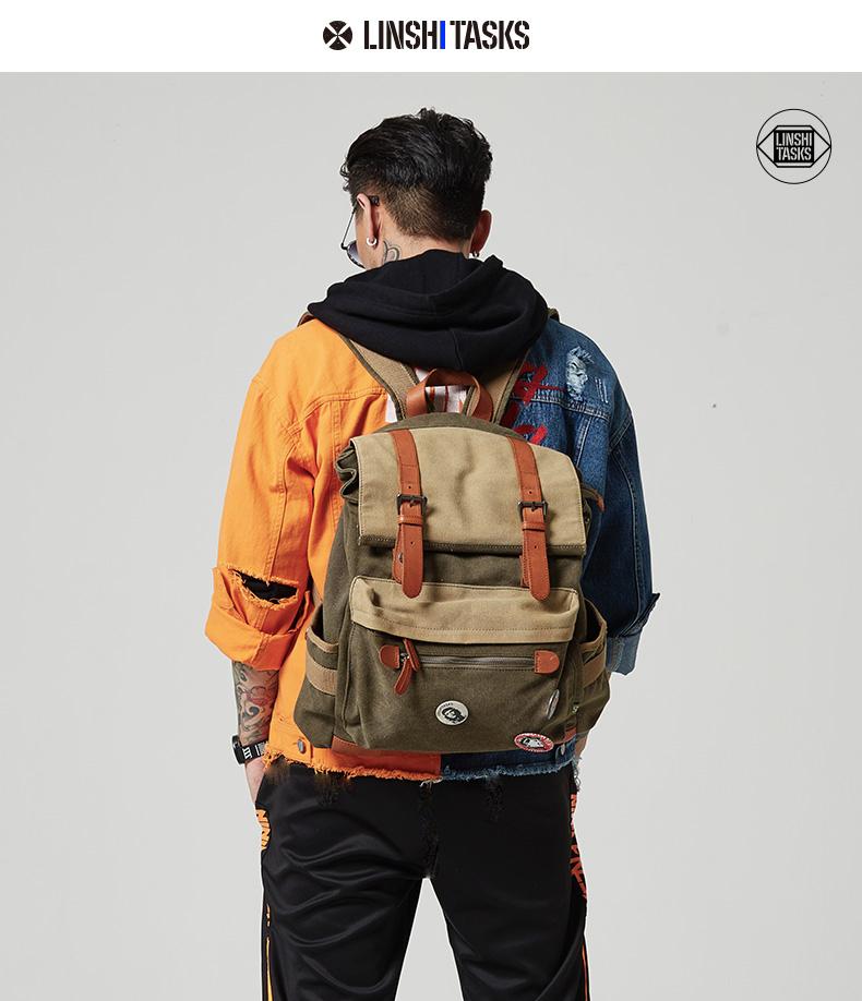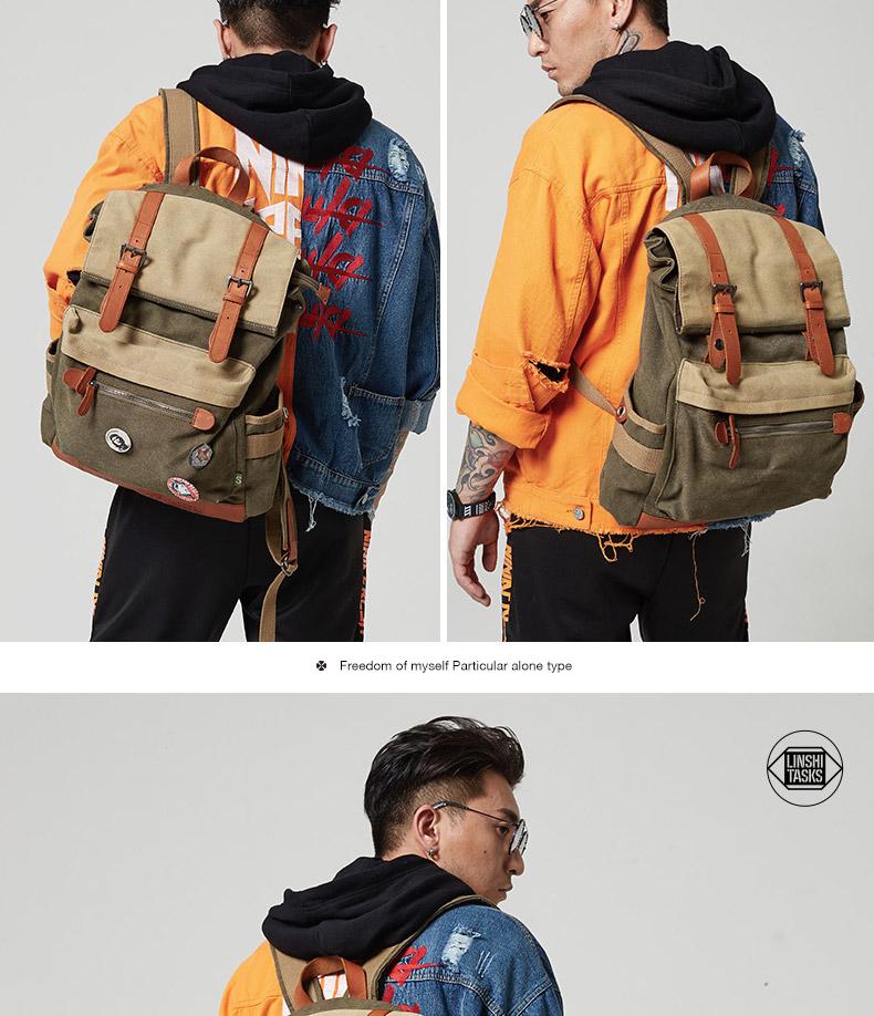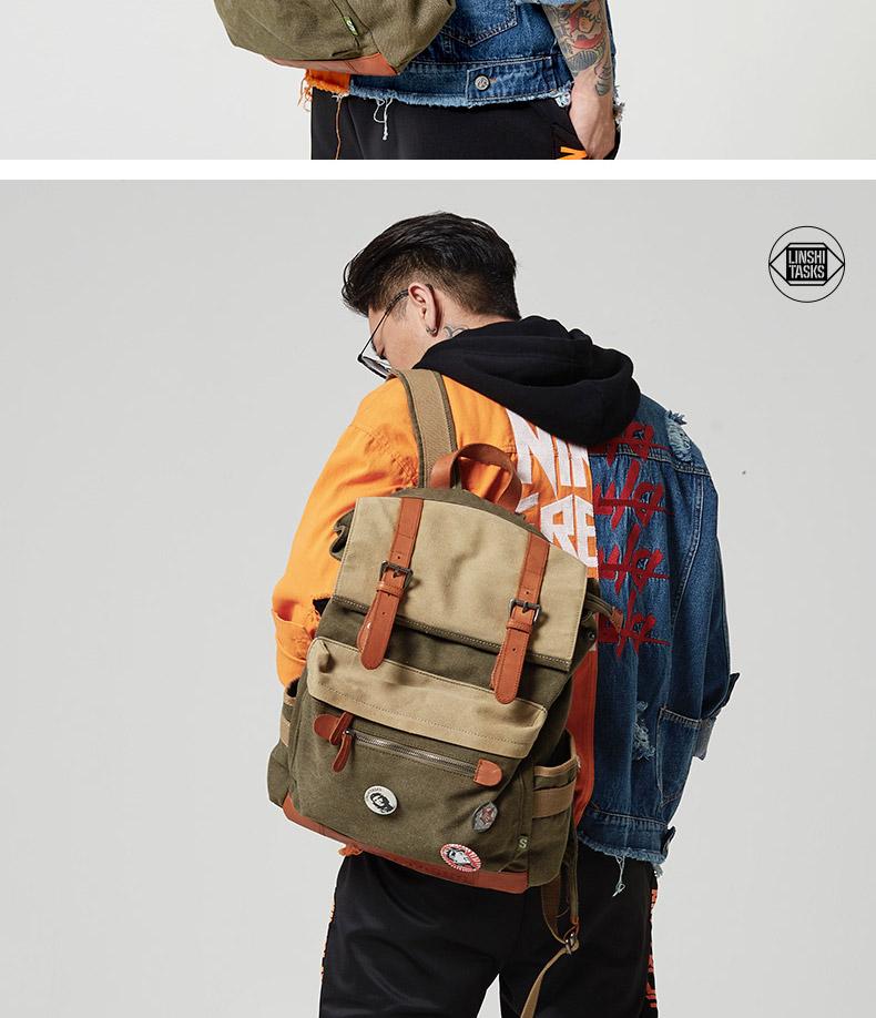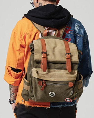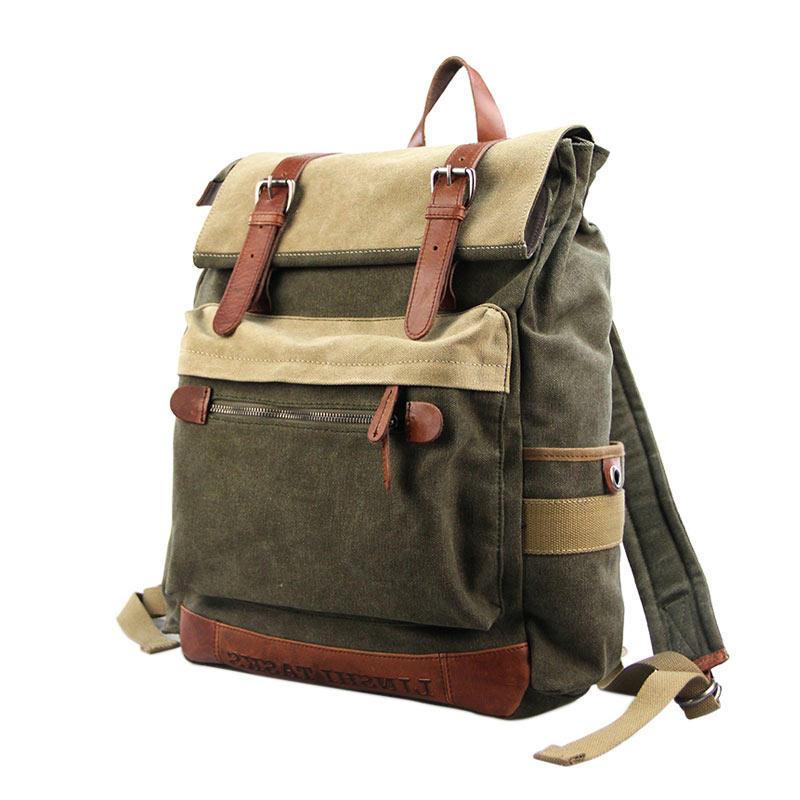 Style: Army Green Canvas Leather Mens Large Backpack School Backpack Canvas Travel Backpack For Men