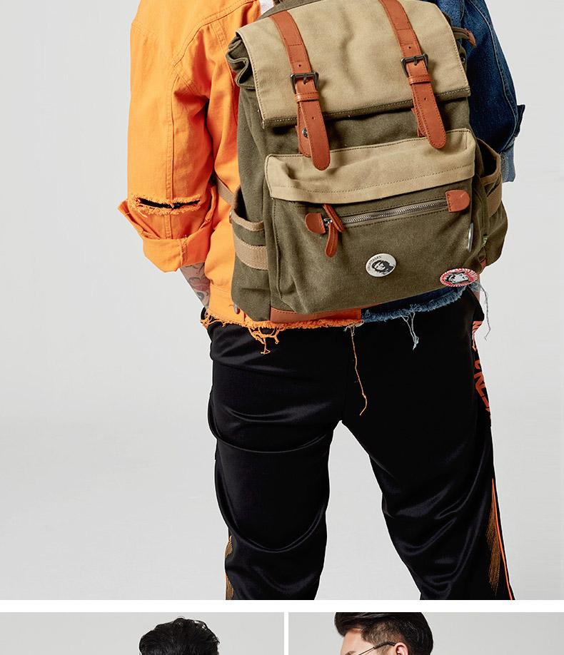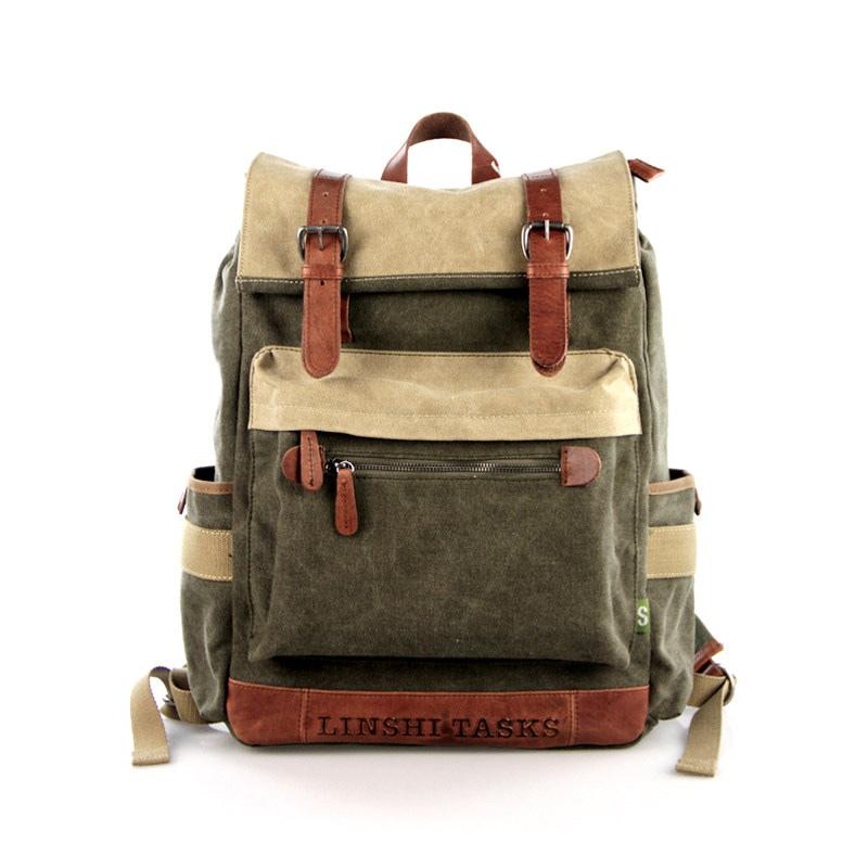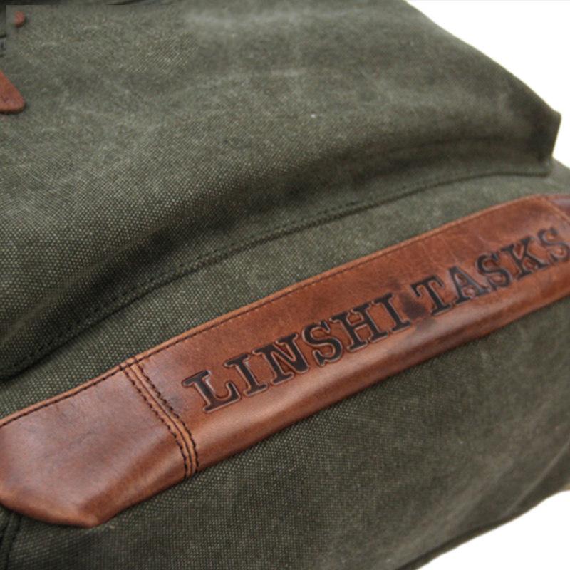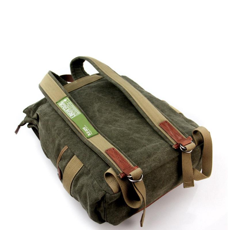 Design: Army Green Canvas Leather Mens Large Backpack School Backpack Canvas Travel Backpack For Men