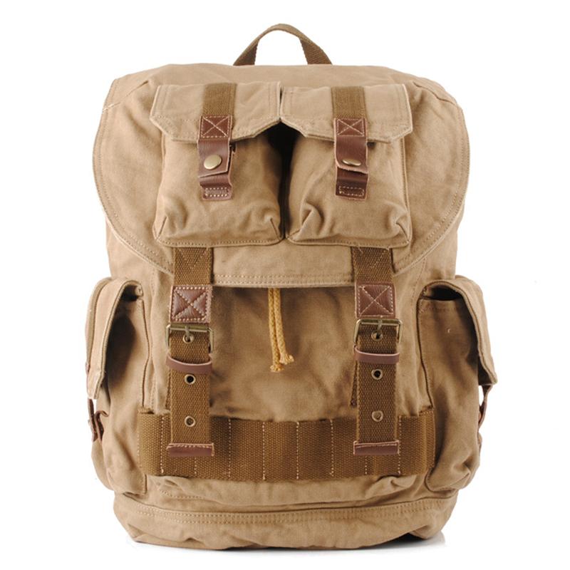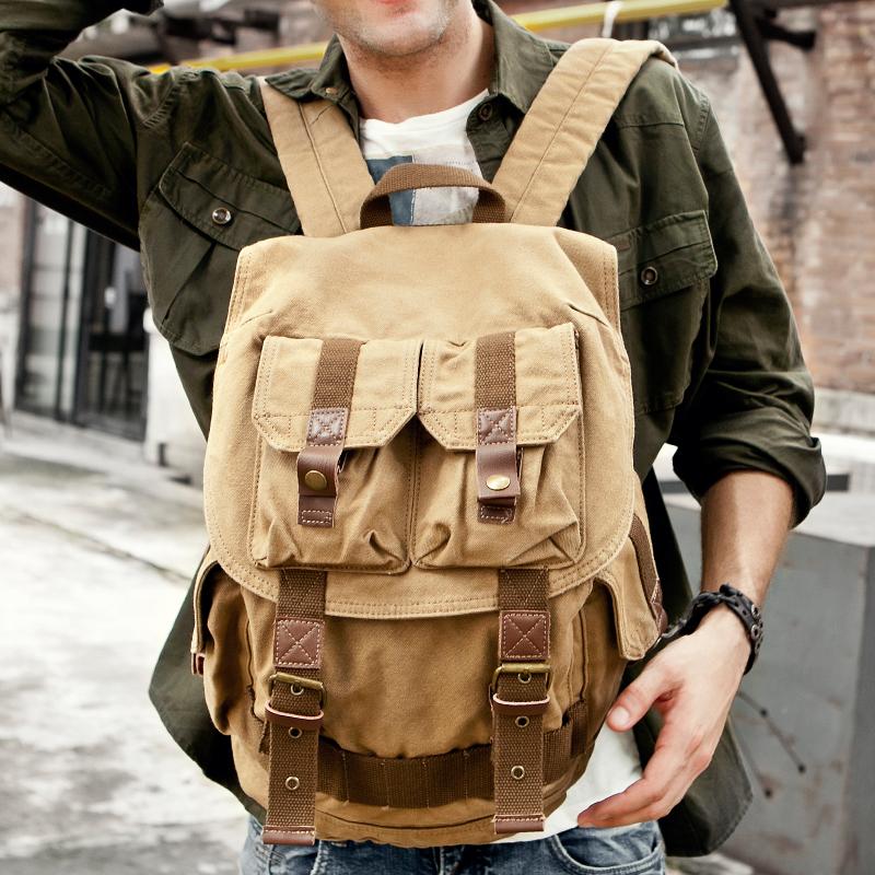Style: Army Green CANVAS Mens Large Fashion Khaki Travel Bag College Backpack Hiking Bag For Men