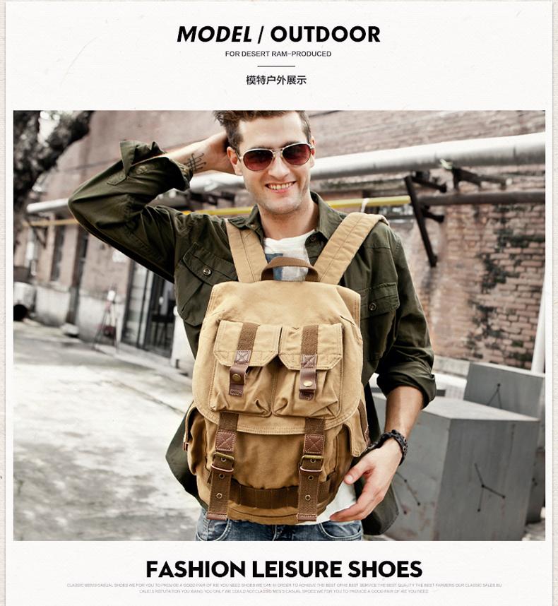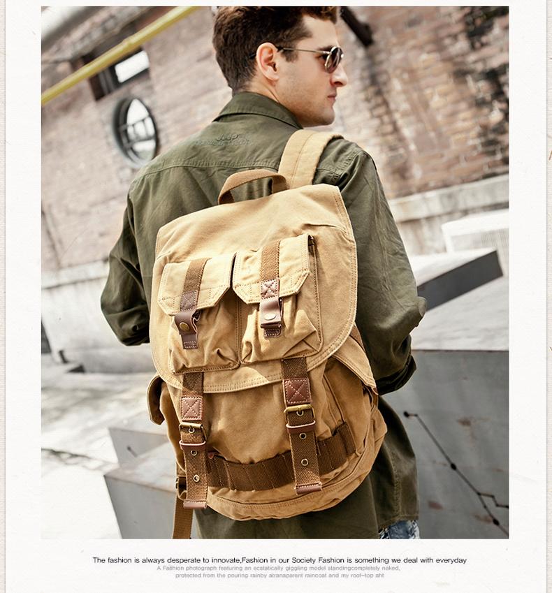 Design: Army Green CANVAS Mens Large Fashion Khaki Travel Bag College Backpack Hiking Bag For Men