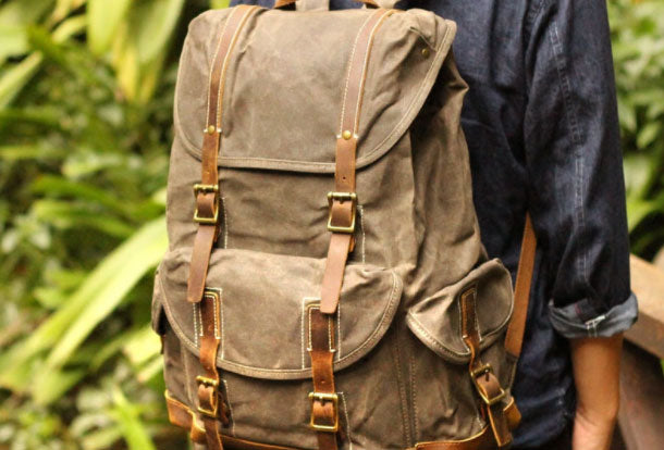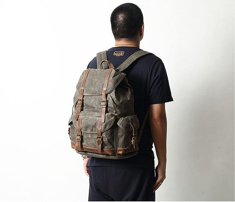 Style: Waxed Canvas Backpack Waxed Cotton Backpack Large Canvas And Leather Backpack
