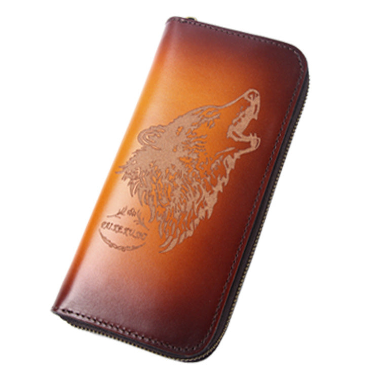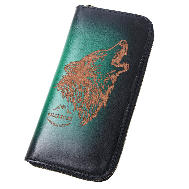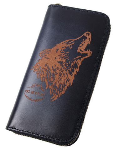Around Zip Black Leather Long Wallet Mens Wolf Zipper Clutch Wallet for Men
