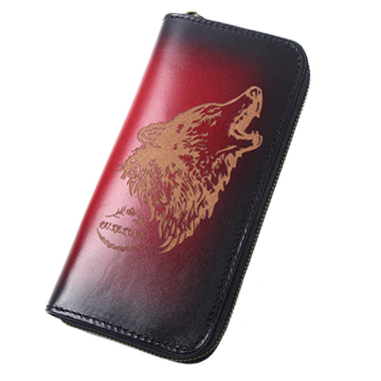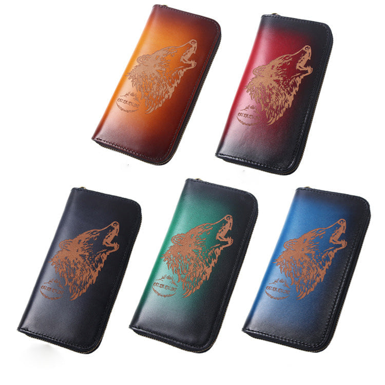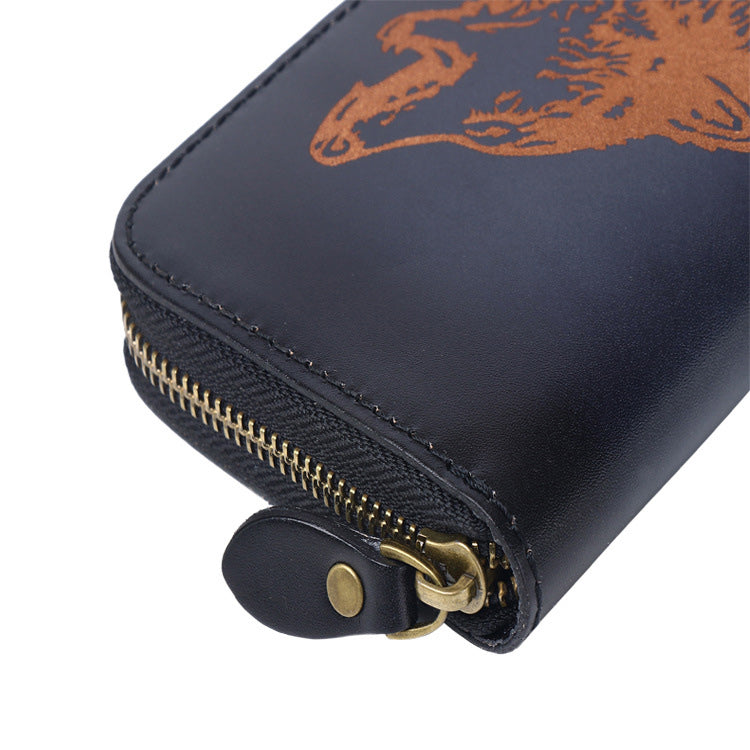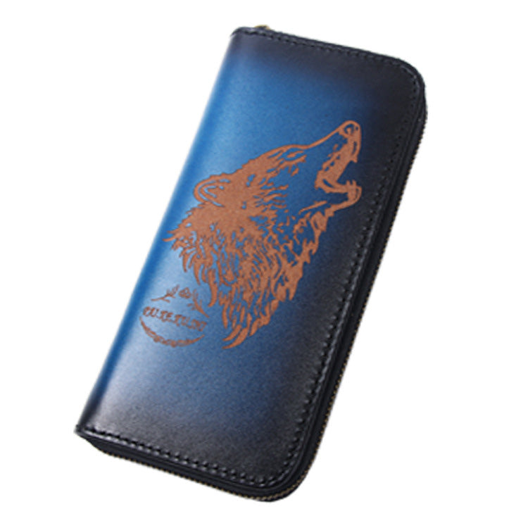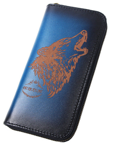 Around Zip Blue Leather Long Wallet Mens Wolf Zipper Clutch Wallet for Men
