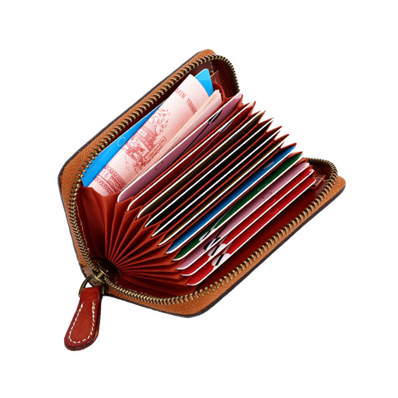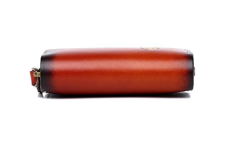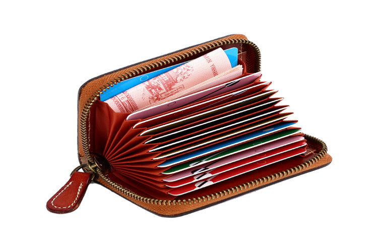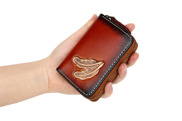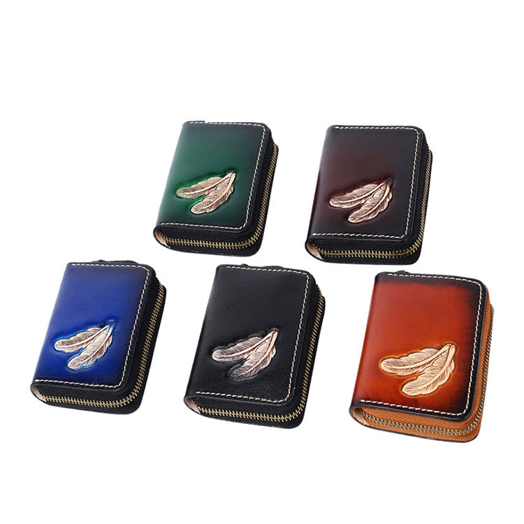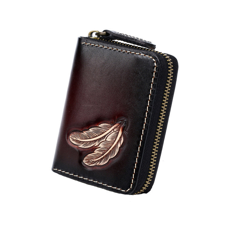 Design: Around Zip Tooled Leather Card Wallet Mens Feather Zipper Card Holder for Men