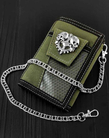 Design: BADASS ARMY GREEN LEATHER MENS TRIFOLD SMALL BIKER WALLETS CHAIN WALLET WALLET WITH CHAINS FOR MEN