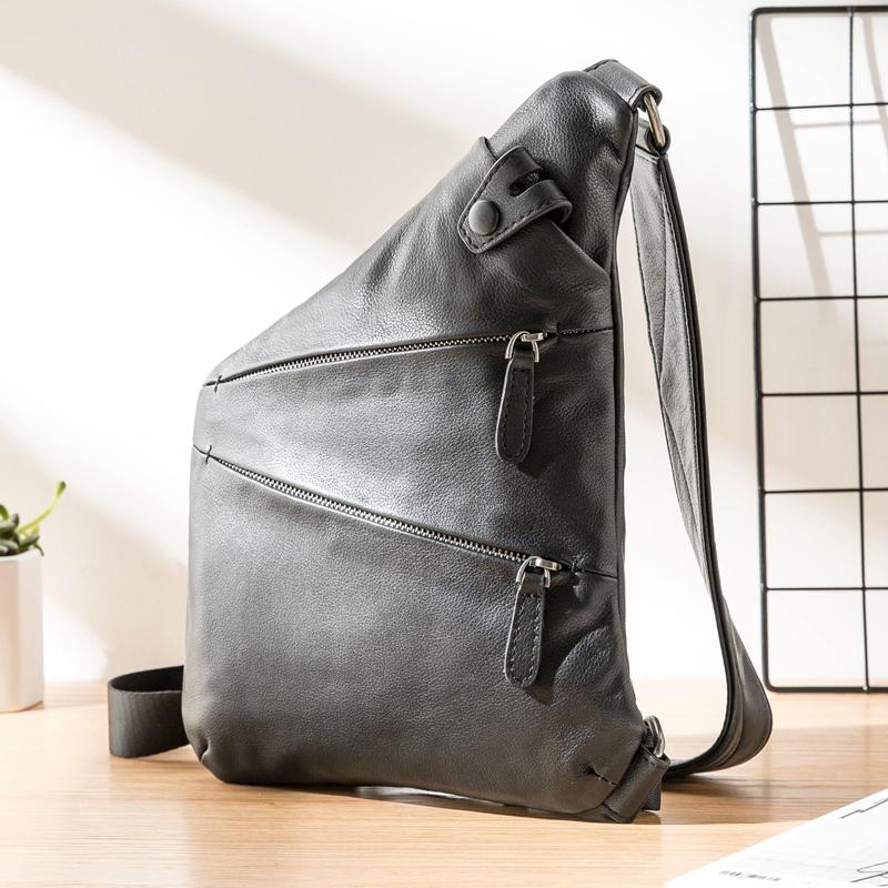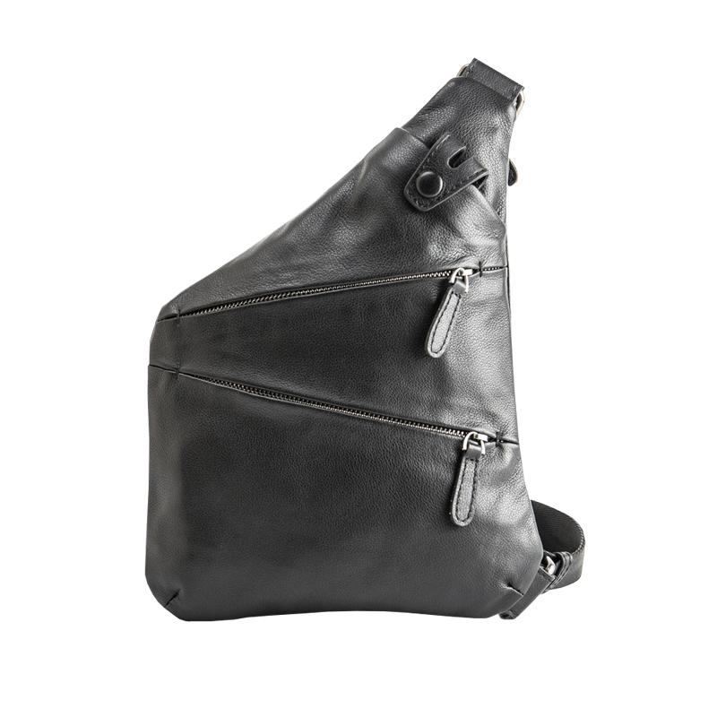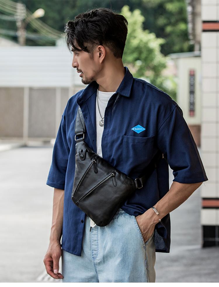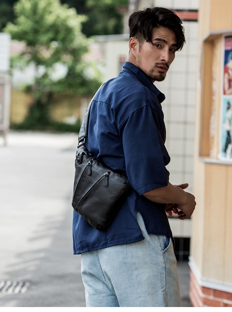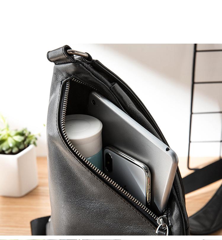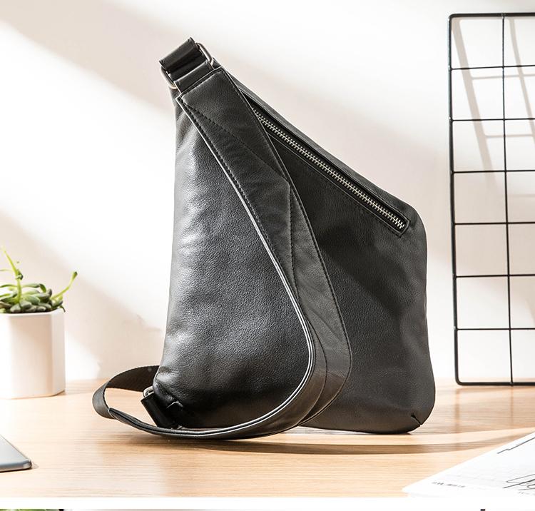 Design: Badass Black Leather Backpack Men's 8-inch Sling Bag Chest Bag One shoulder Backpack Bundy Bag For Men