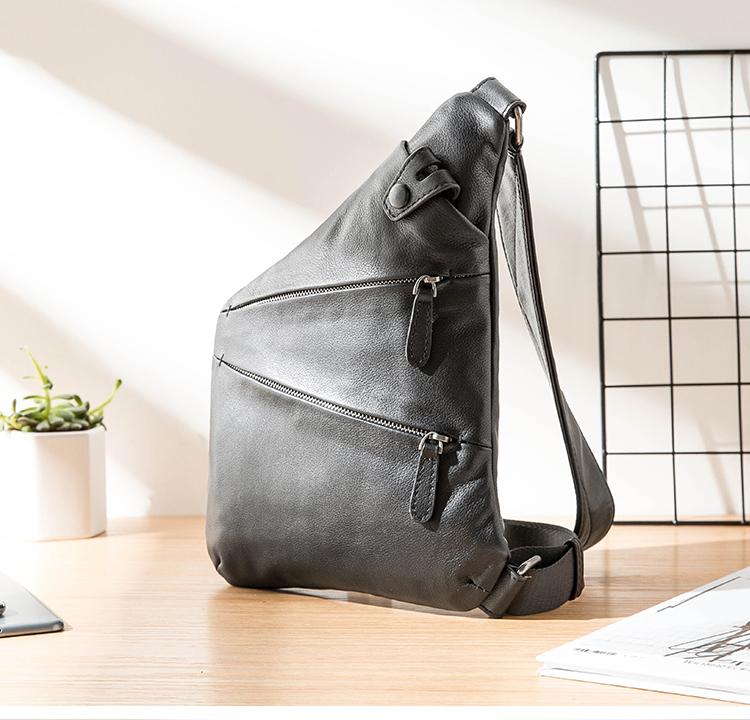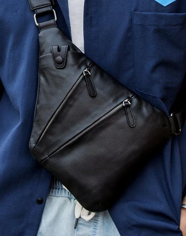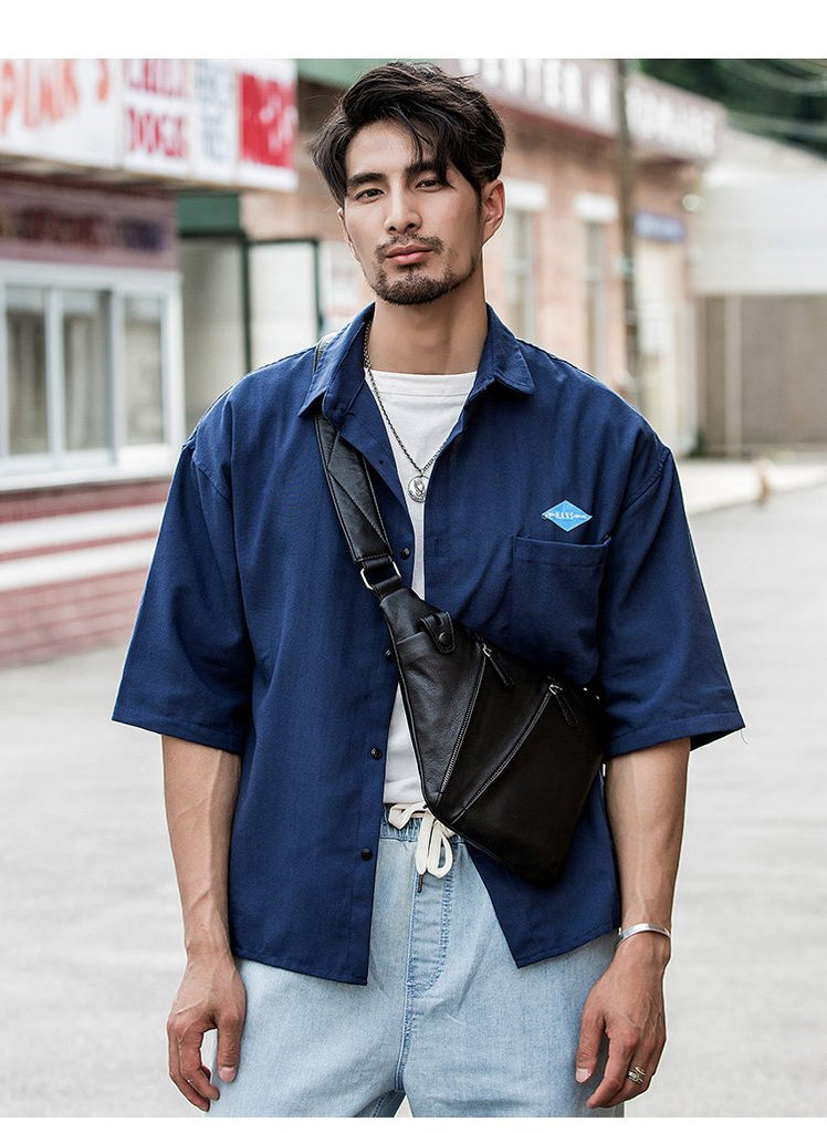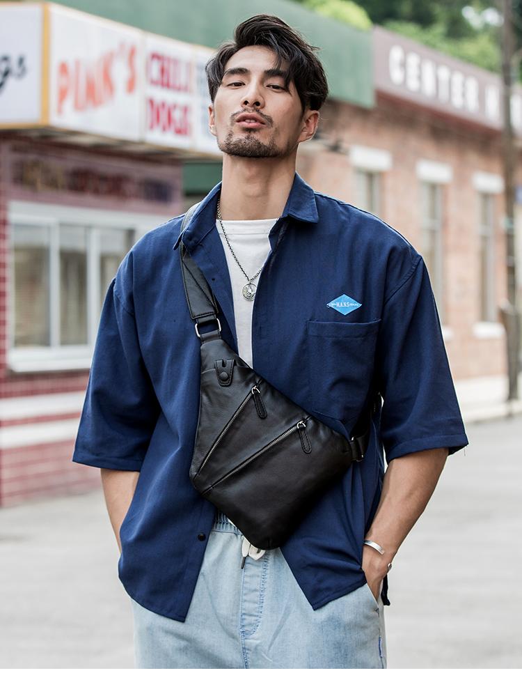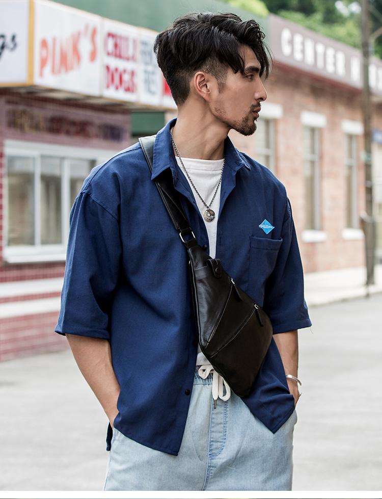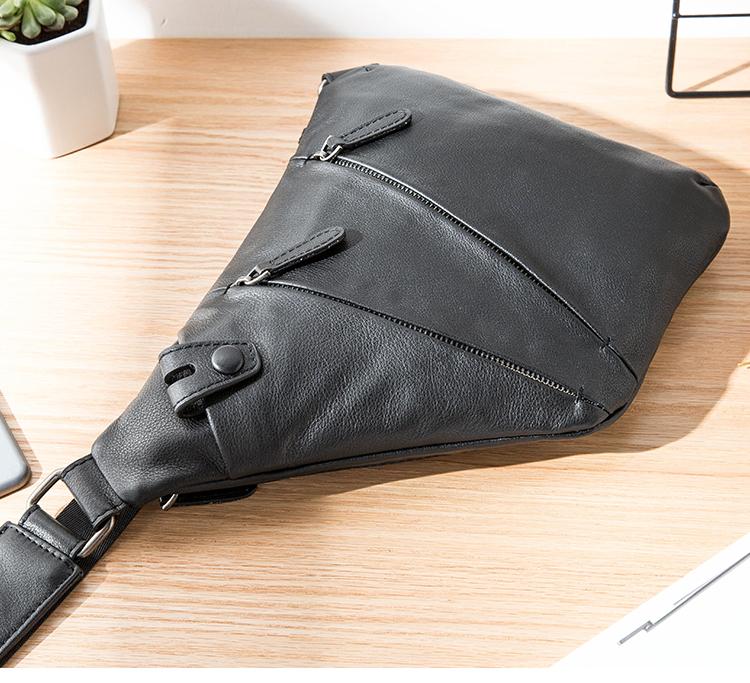 Design: Badass Black Leather Backpack Men's 8-inch Sling Bag Chest Bag One shoulder Backpack Bundy Bag For Men