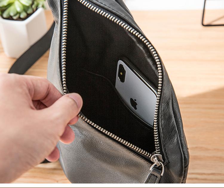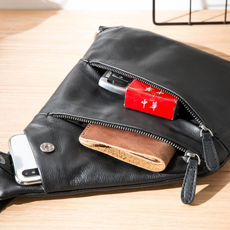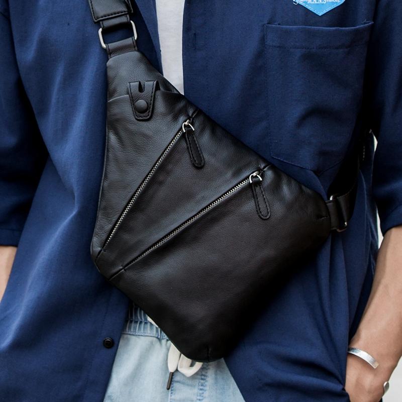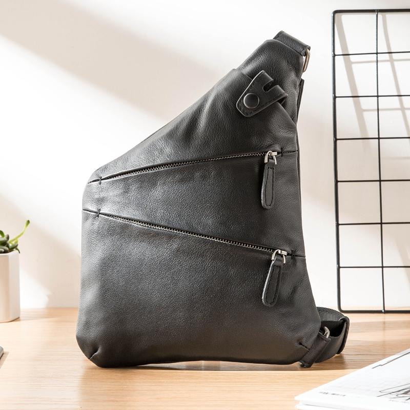 Style: Badass Black Leather Backpack Men's 8-inch Sling Bag Chest Bag One shoulder Backpack Bundy Bag For Men