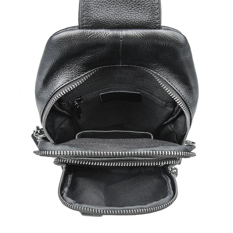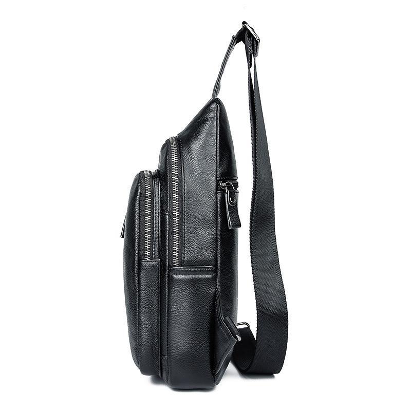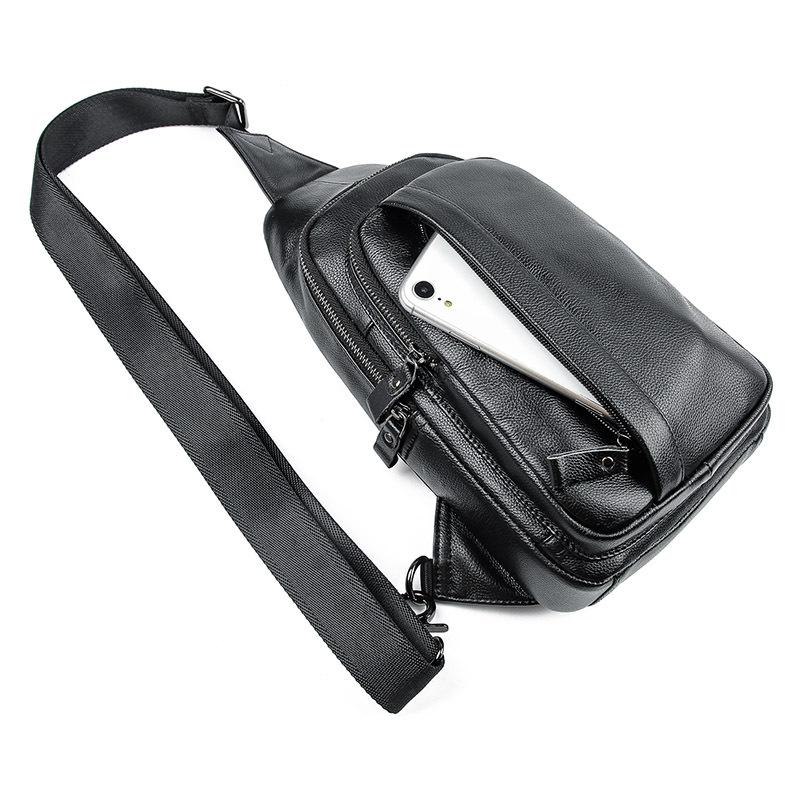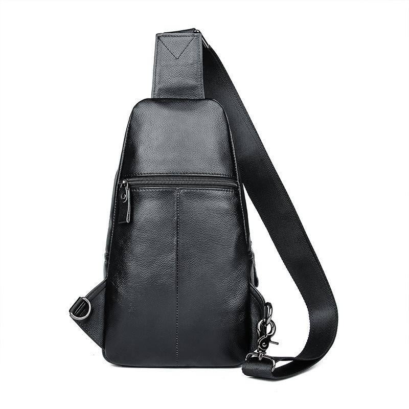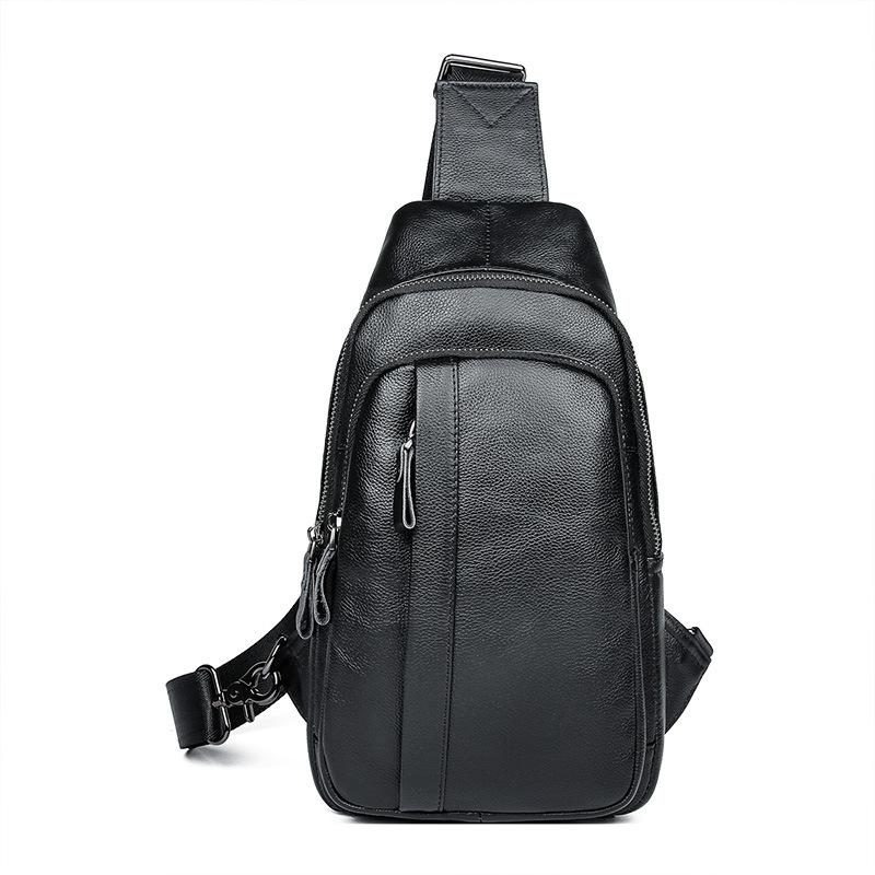 Design: Badass Black Leather Backpack Men's 8-inch Sling Bag Chest Bag One shoulder Backpack Sports Bag For Men