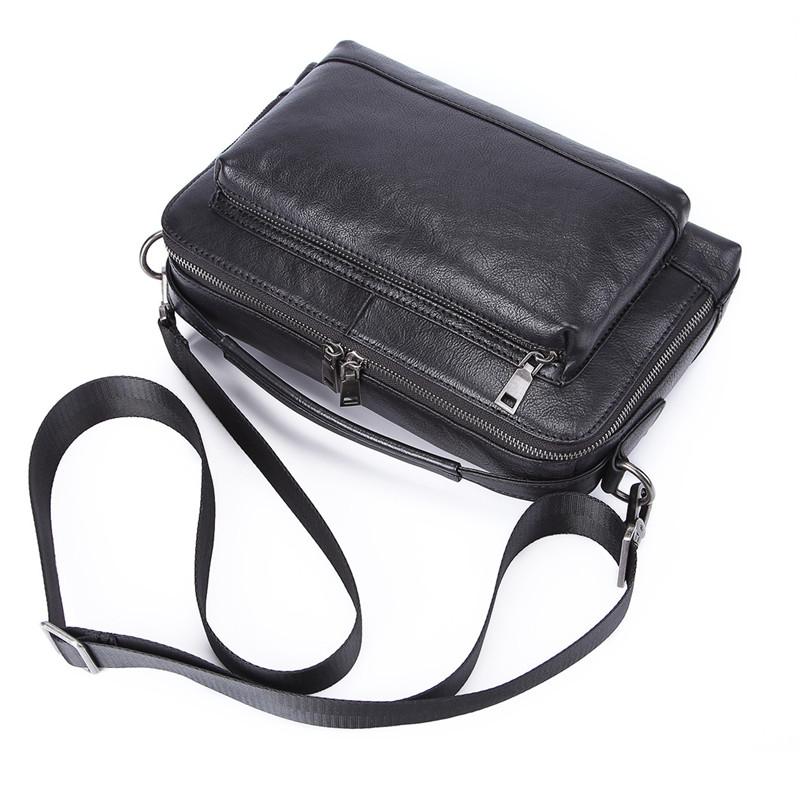 Design: BADASS Black LEATHER MENS 10-inch Diagonal Bag SHOULDER BAG SIDE BAG COURIER BAG Business MESSENGER BAG FOR MEN
