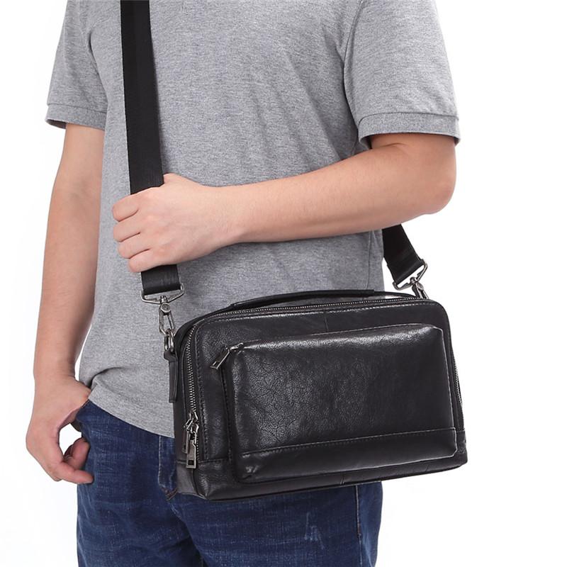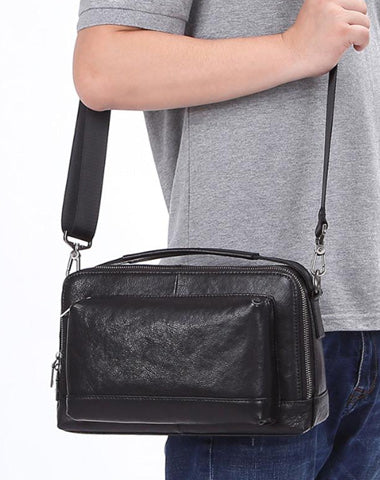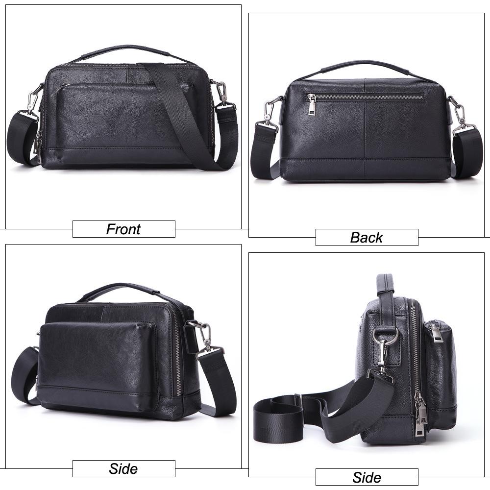 Style: BADASS Black LEATHER MENS 10-inch Diagonal Bag SHOULDER BAG SIDE BAG COURIER BAG Business MESSENGER BAG FOR MEN