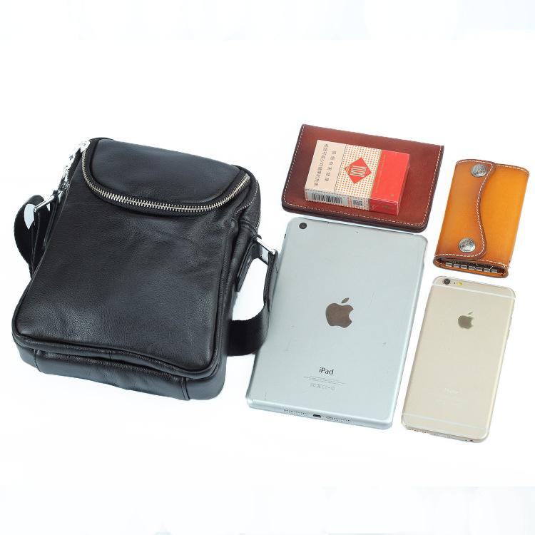 Style: BADASS Black LEATHER MENS 8-inch Phone Diagonal Bag SHOULDER BAG SIDE BAG COURIER BAG MESSENGER BAG FOR MEN