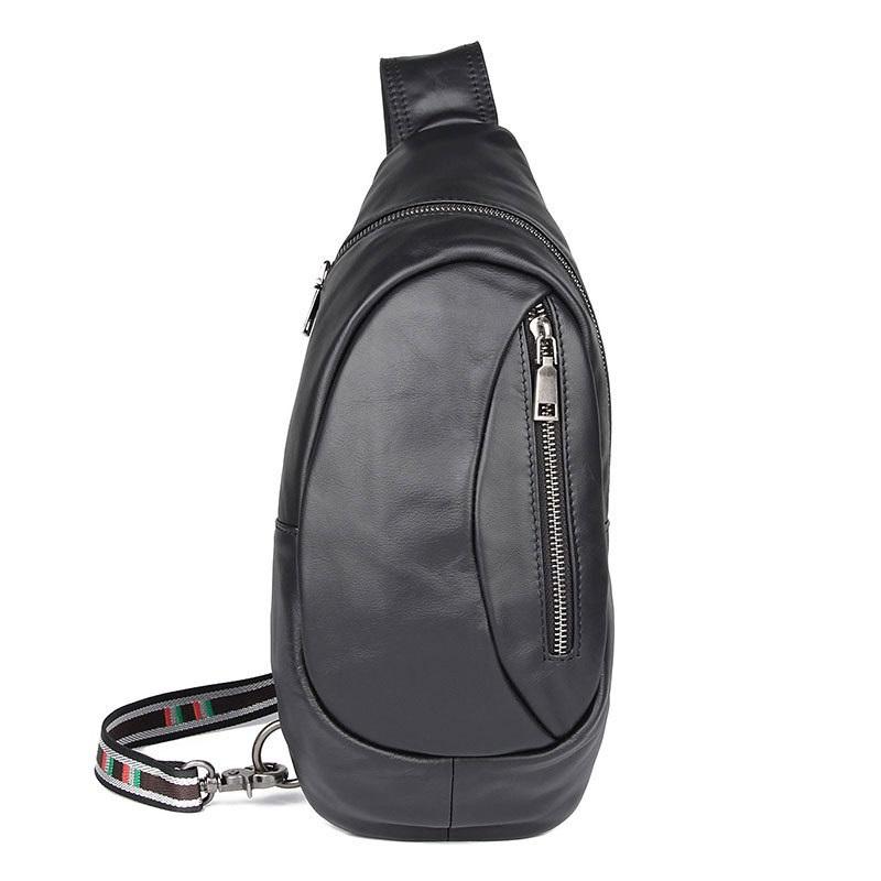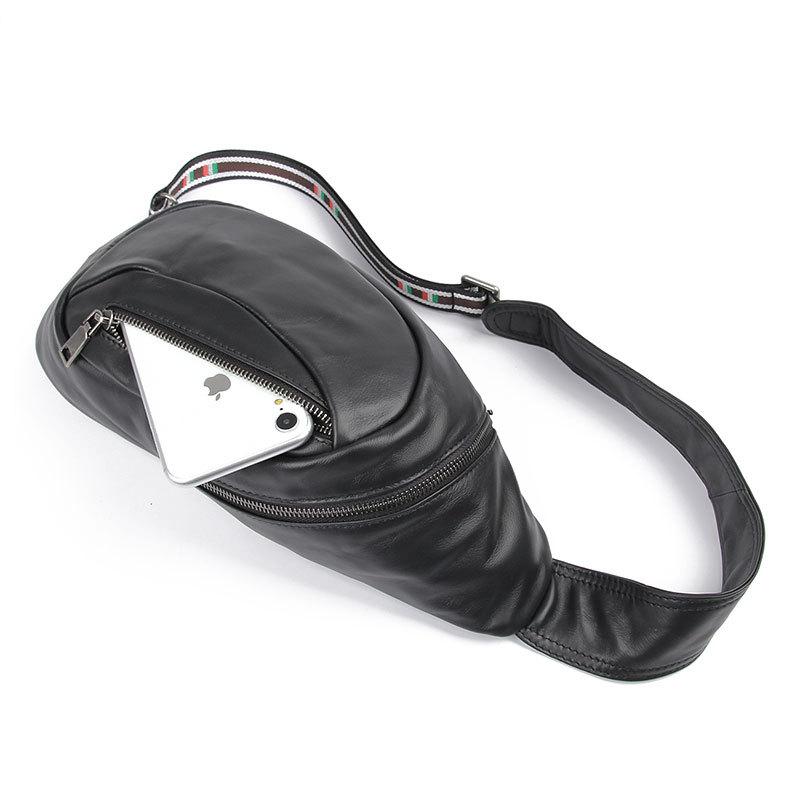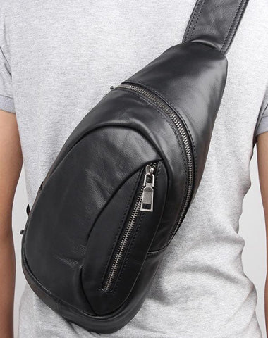 Style: Badass Black Leather Men's 8 inches Sling Bag Chest Bag One shoulder Backpack Sling Bag For Men