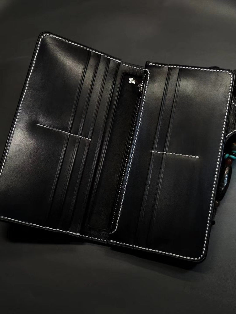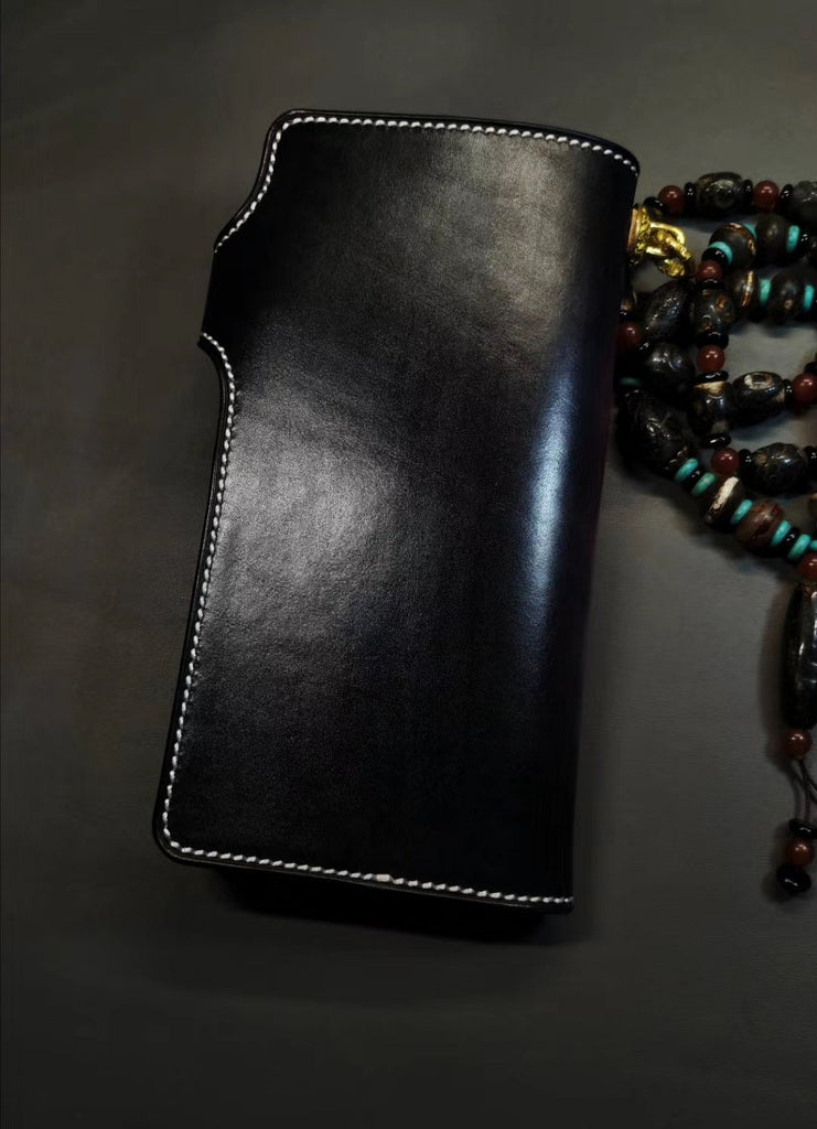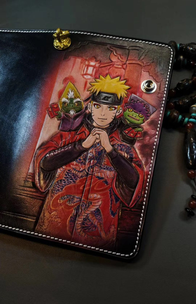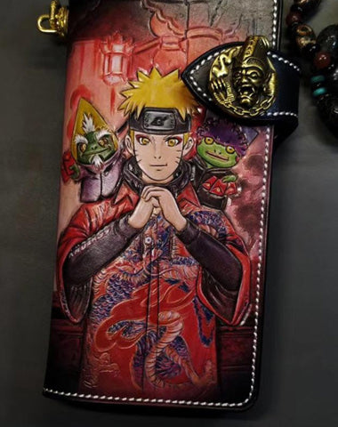 Style: Badass Black Leather Men's Naruto Long Biker Wallet Handmade Tooled Zipper Long Wallets For Men