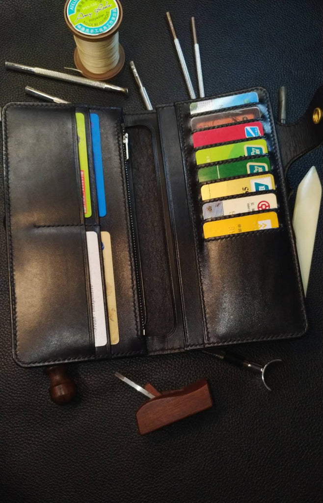 Slots: 2 full size bill slots, 12 card holders, 1 zipper Slot