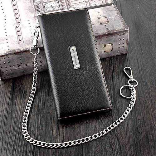 Style: Badass Black Leather Men's Punk Cross Long Biker Chain Wallet Black Long Wallets with Chain For Men