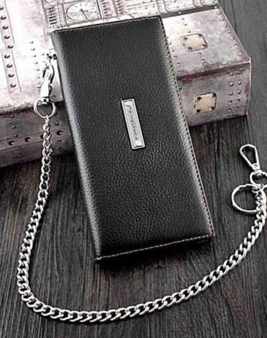 Design: Badass Black Leather Men's Punk Cross Long Biker Chain Wallet Black Long Wallets with Chain For Men