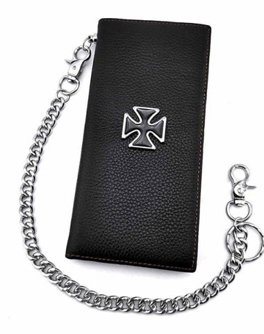 Design: Badass Black Leather Men's Punk Cross Long Biker Chain Wallet Long Wallet Chain For Men
