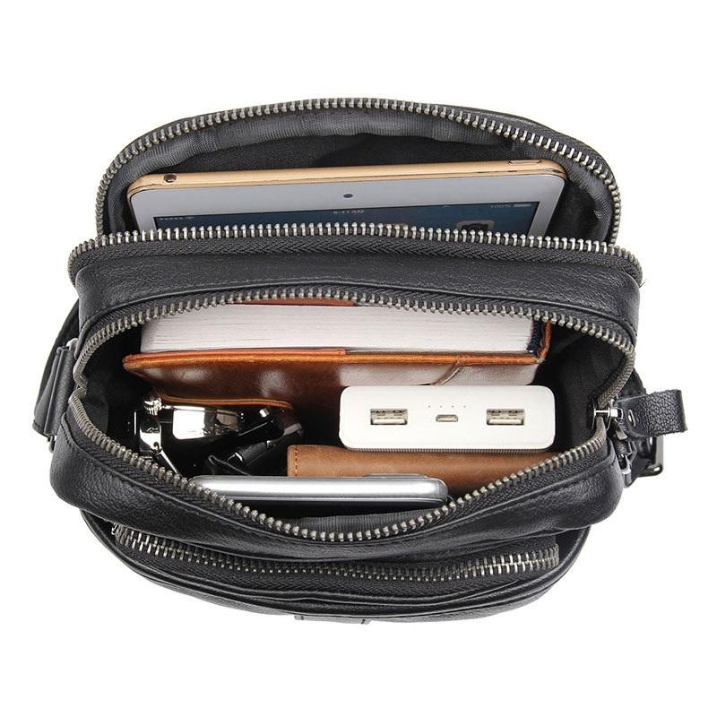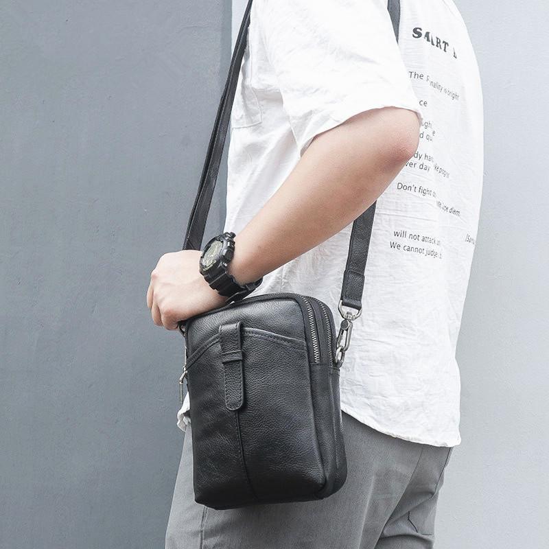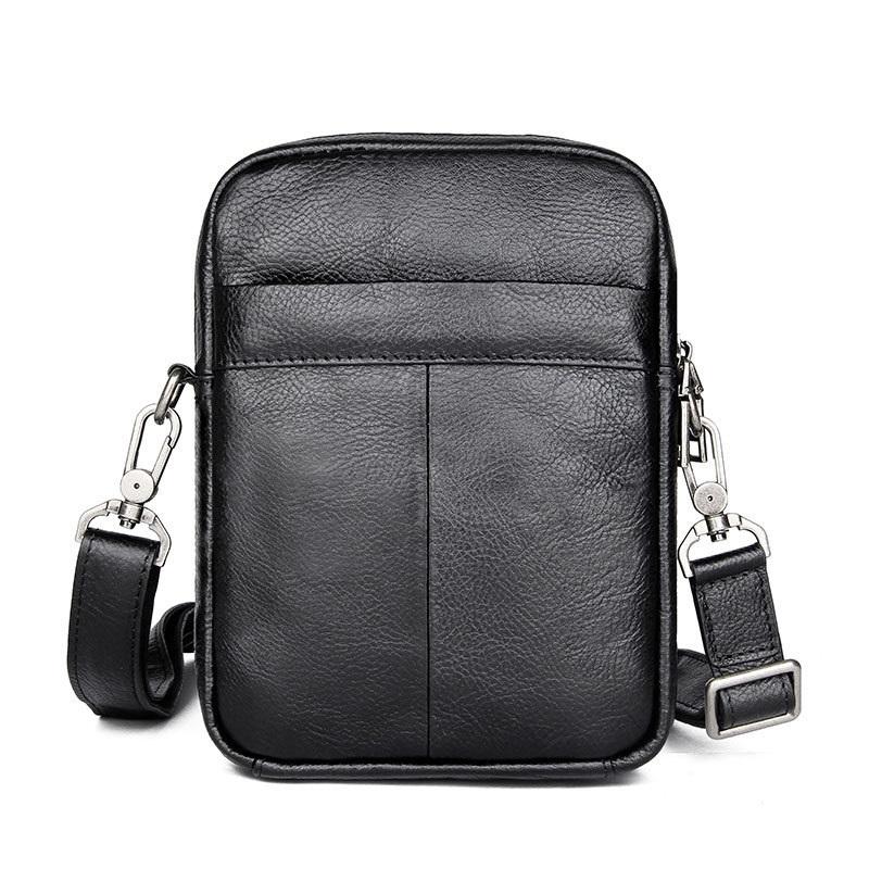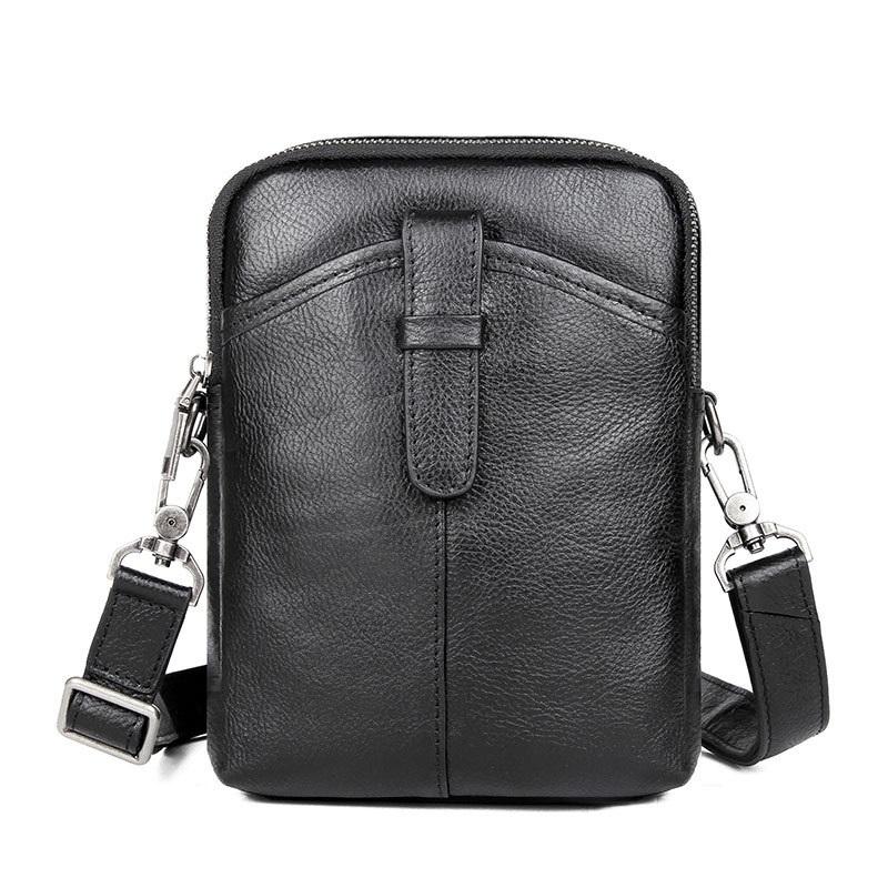 Design: BADASS Black LEATHER MEN'S Side bag Vertical Phone Bag MESSENGER BAG Shoulder Bag FOR MENOverview: