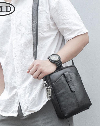 Design: BADASS Black LEATHER MEN'S Side bag Vertical Phone Bag MESSENGER BAG Shoulder Bag FOR MEN