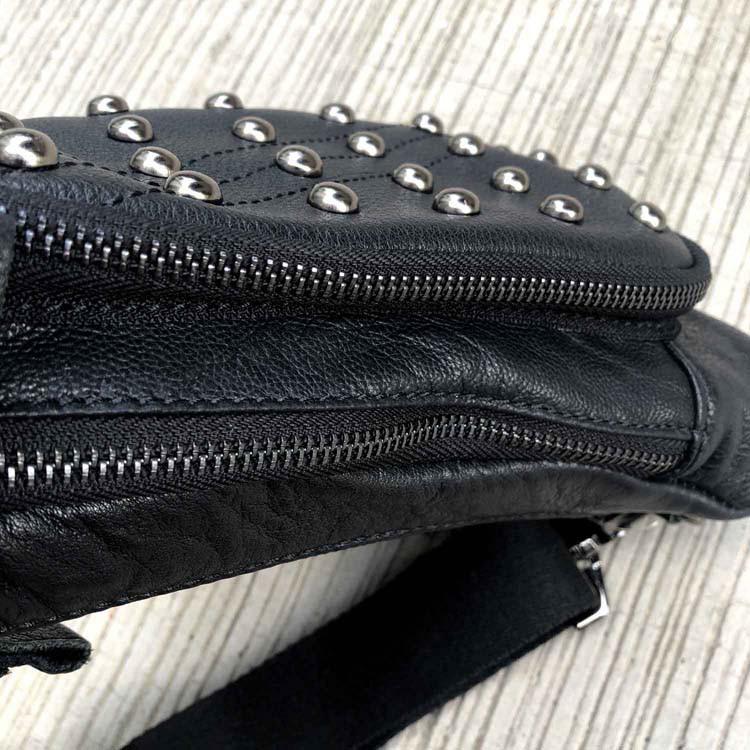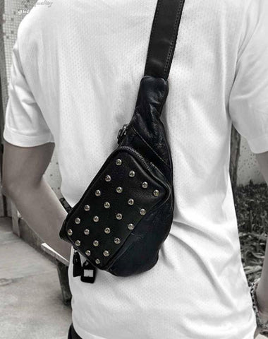 Style: Badass Black Leather Men's Sling Bag Chest Bag One shoulder Backpack Phone Bag For Men