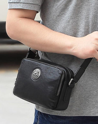 Style: BADASS Black LEATHER MENS Small Ipad SHOULDER BAG SIDE BAG Casual MESSENGER BAG FOR MEN