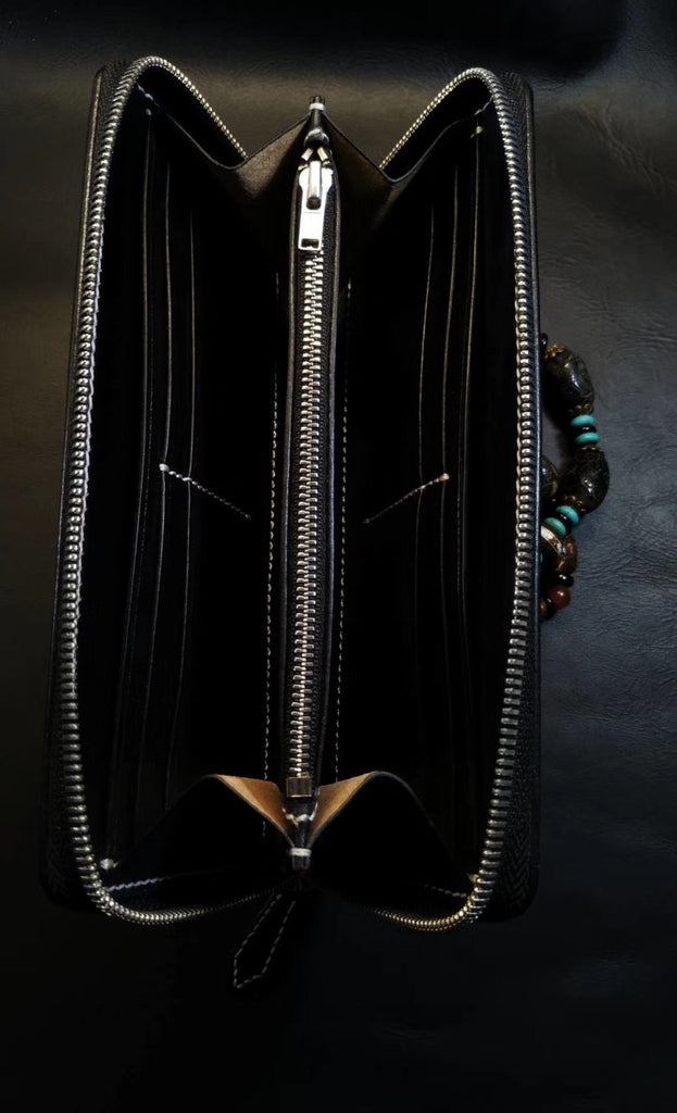 Style: Badass Black Leather Men's Chameleon Biker Wallet Handmade Tooled Zipper Long Wallets For Men
