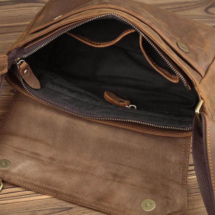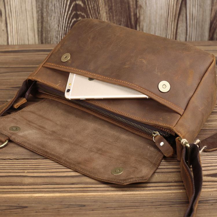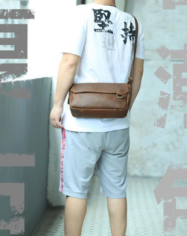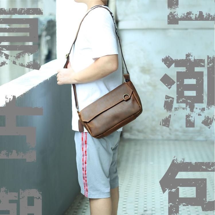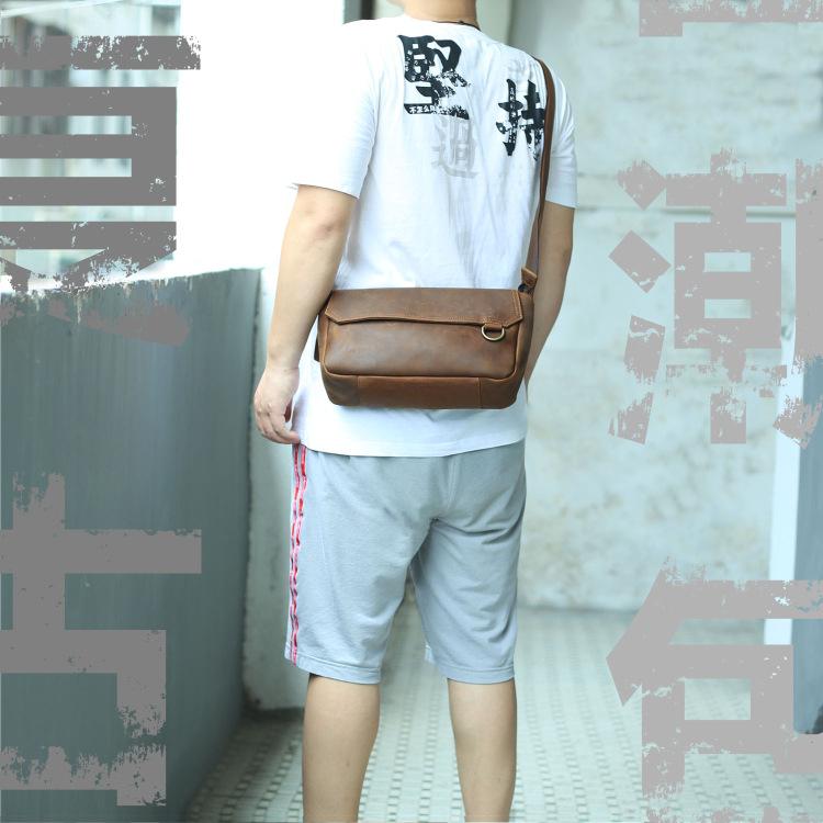 Design: BADASS Brown LEATHER MENS 8-inch Horizontal SHOULDER BAG SIDE BAG COURIER BAG MESSENGER BAG FOR MEN