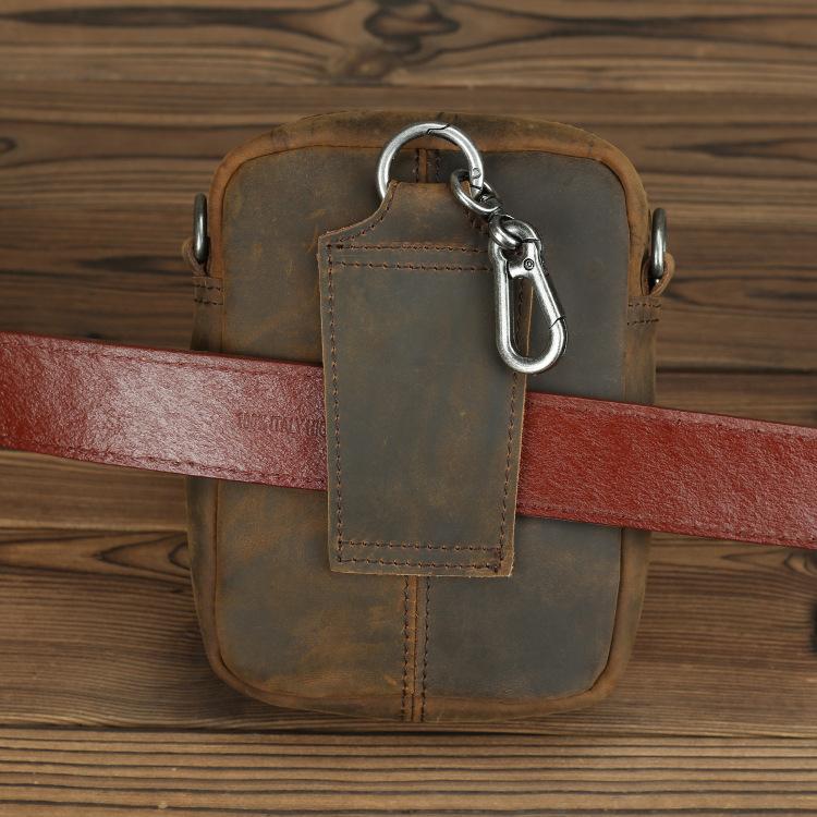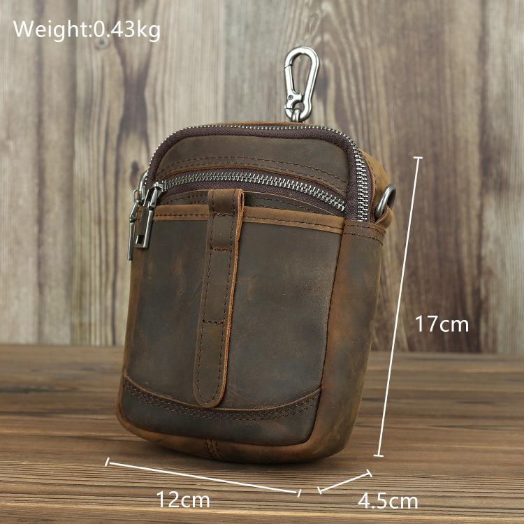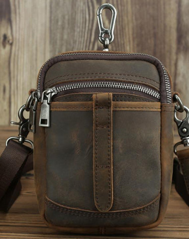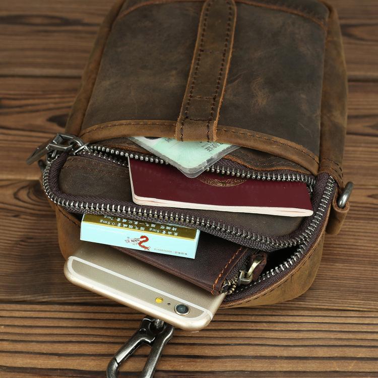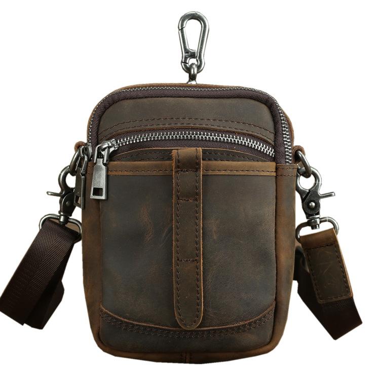 Style: BADASS Brown LEATHER MENS 8 inches SHOULDER BAG SIDE BAG Belt Bag MESSENGER BAG FOR MEN