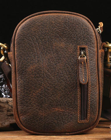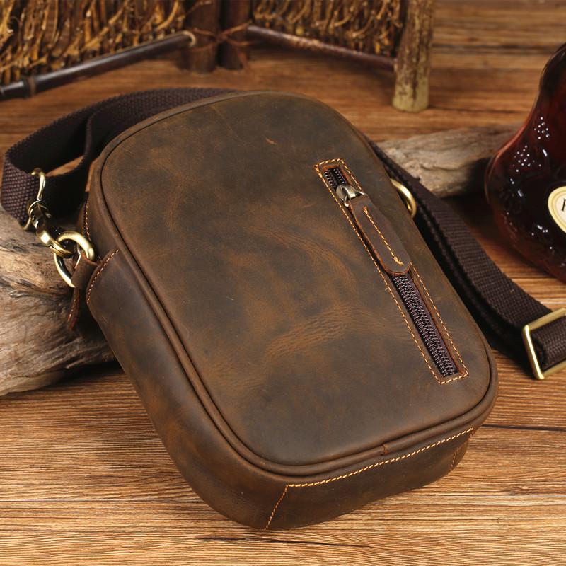 Design: Badass Brown Leather Men's 8 inches Sling Bag Chest Bag One shoulder Backpack Phone Bag For Men
