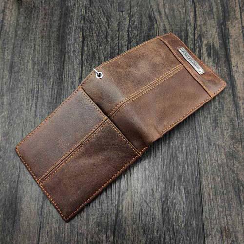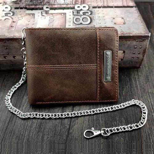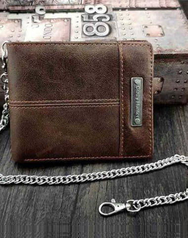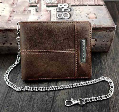 Design: Badass Brown Leather Men's Bifold Small Biker Wallet Chain Wallet Wallet with chain For Men