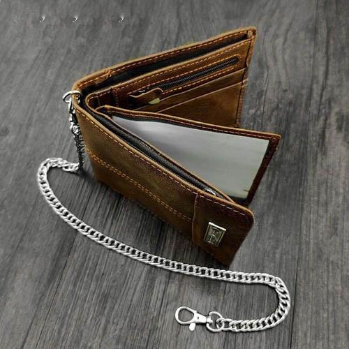 Style: Badass Brown Leather Men's Bifold Small Biker Wallet Chain Wallet Wallet with chain For Men