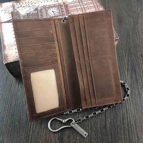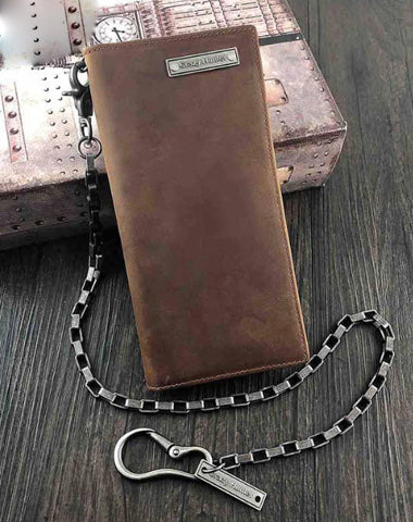 Design: Badass Brown Leather Men's Long Biker Chain Wallet Black Long Wallets with Chain For Men