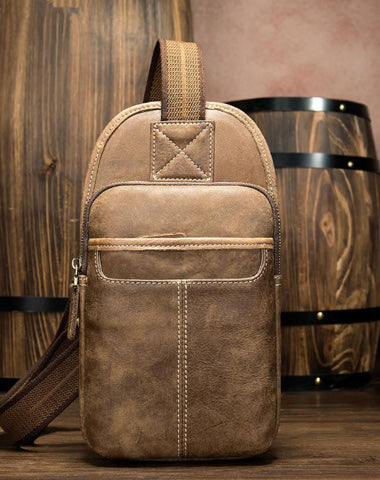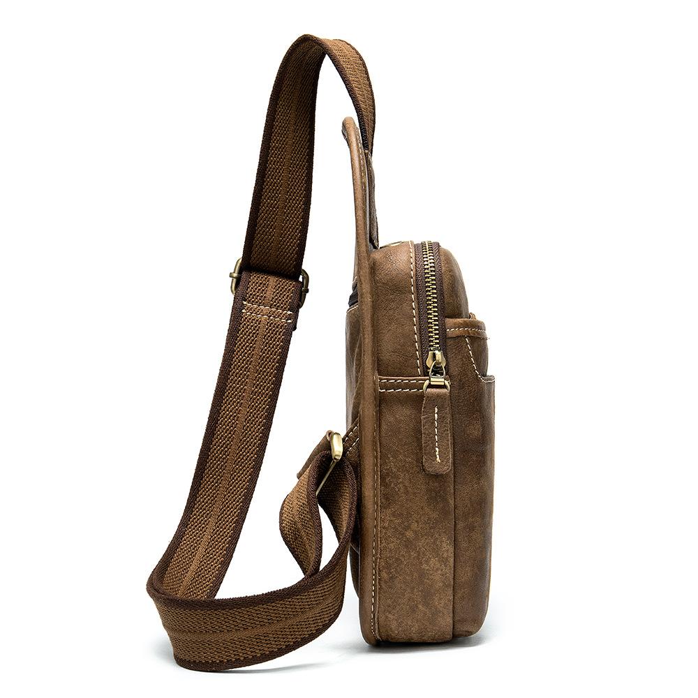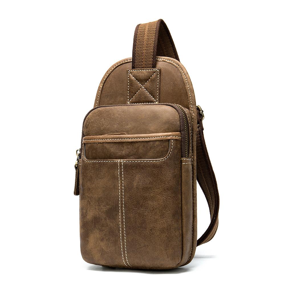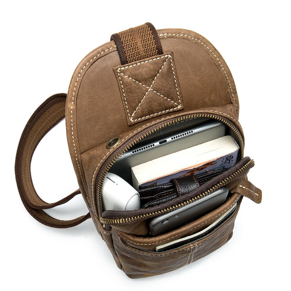 Style: Badass Brown Leather Men's Sling Bag Chest Bag Multi-function 8-inches One shoulder Backpack For Men