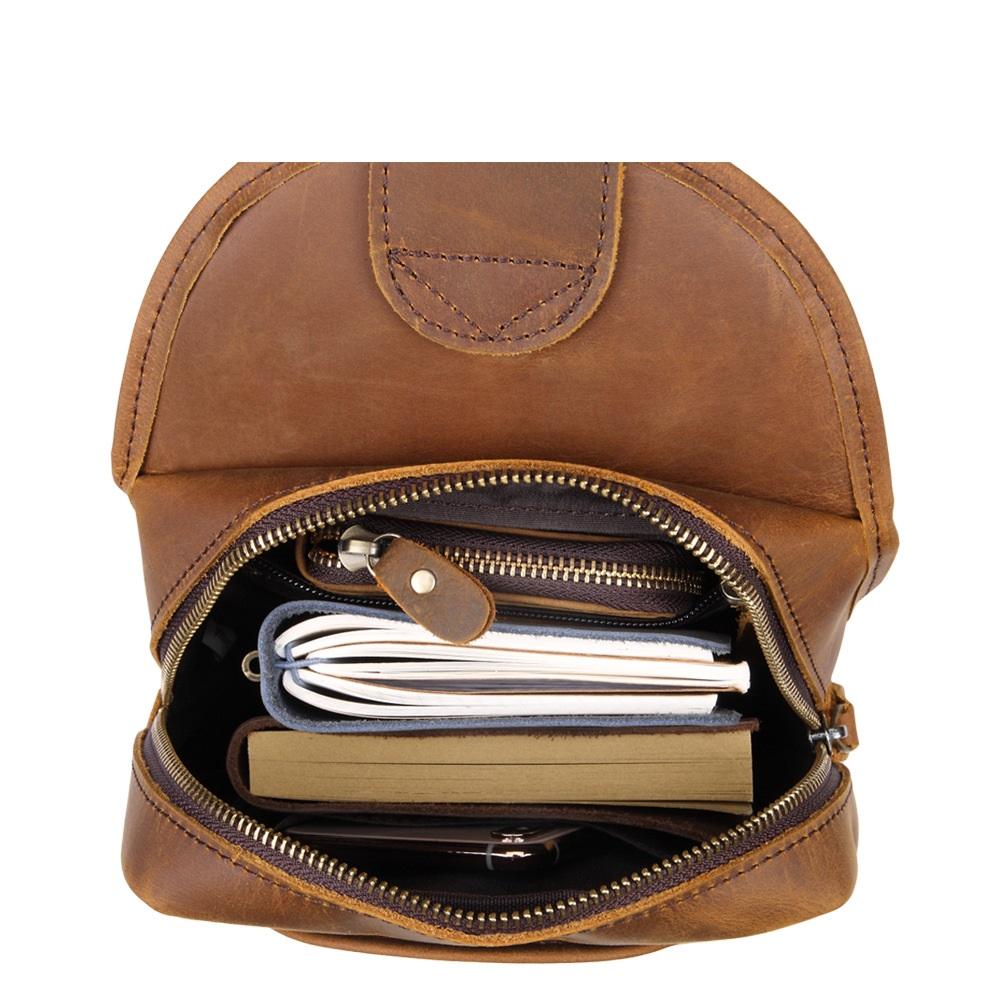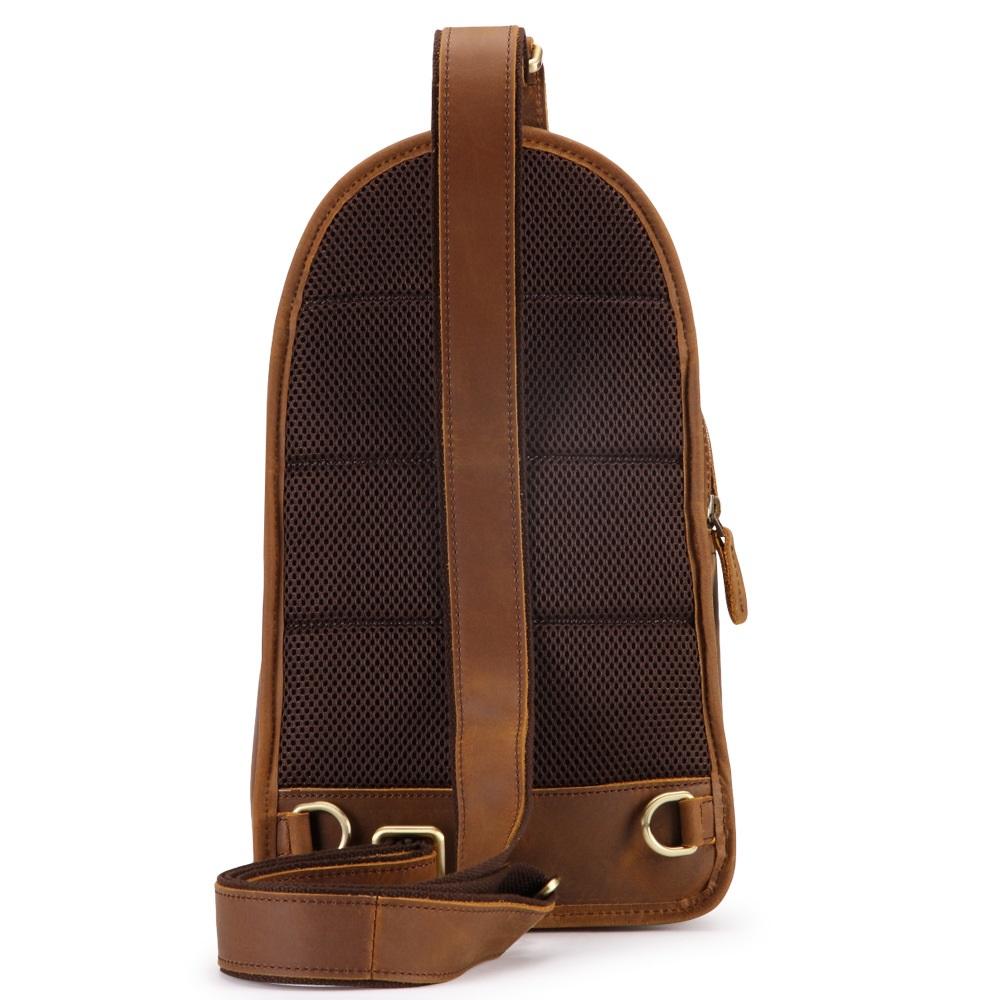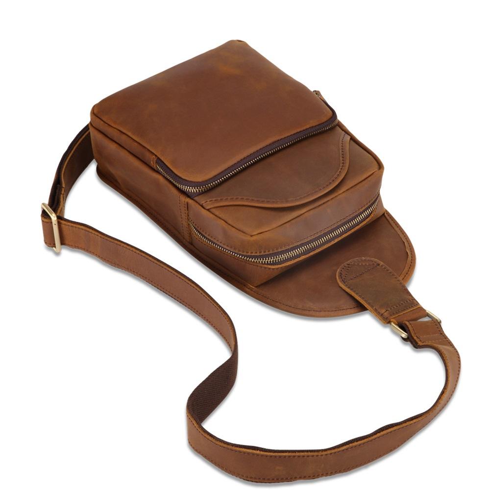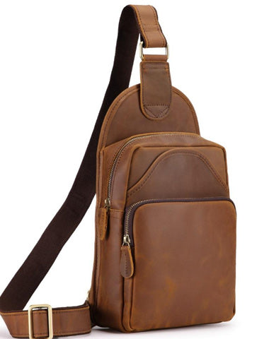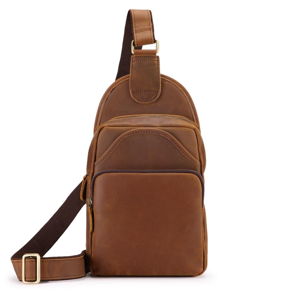 Style: Badass Brown Leather Men's Sling Bag Chest Bag Simple 8-inches One shoulder Backpack For Men
