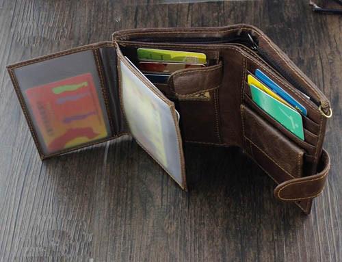 Slots: 2 full size bill slot, 9 card holders, 1 zipper slot