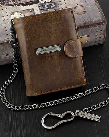 Design: Badass Brown Leather Men's Trifold Small Biker Wallet Chain Wallets Wallet with chain For Men