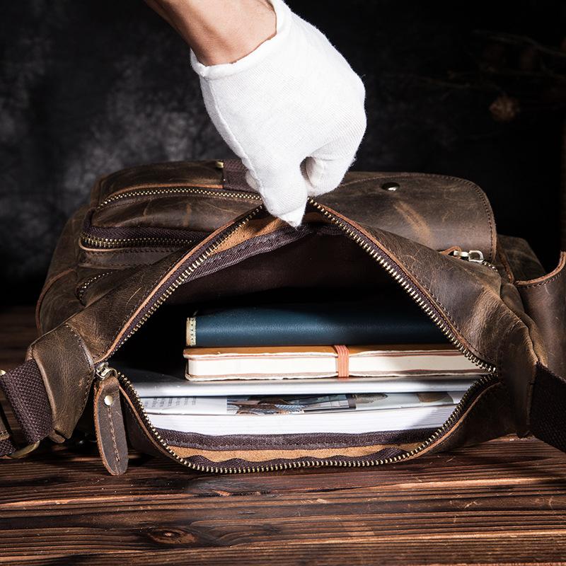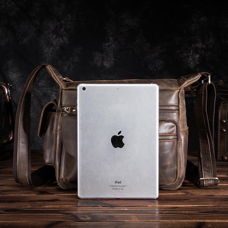 Style: BADASS Dark Brown LEATHER MENS 10 inches Ipad SHOULDER BAG SIDE BAG COURIER BAG MESSENGER BAG FOR MEN