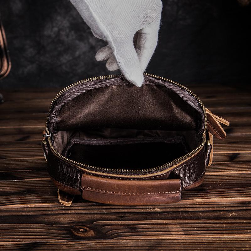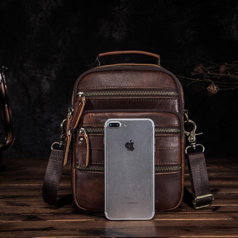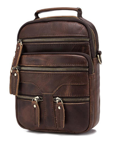Style: BADASS Dark Brown LEATHER MENS 8 inches Multi-pocket Portable SHOULDER BAG SIDE BAG COURIER BAG MESSENGER BAG FOR MEN