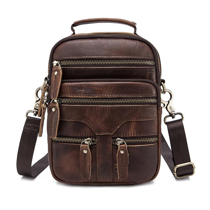 Design: BADASS Dark Brown LEATHER MENS 8 inches Multi-pocket Portable SHOULDER BAG SIDE BAG COURIER BAG MESSENGER BAG FOR MEN