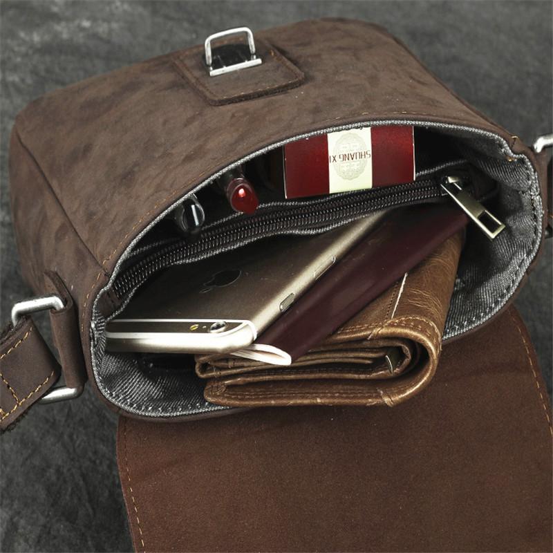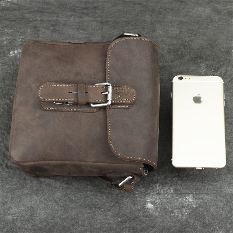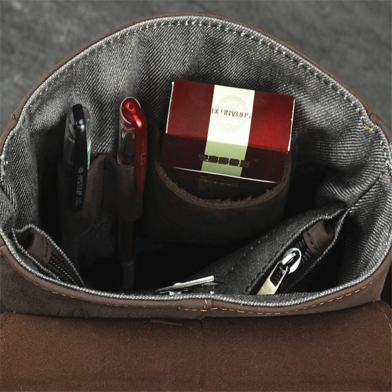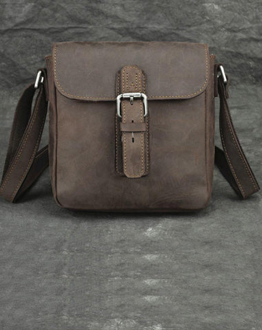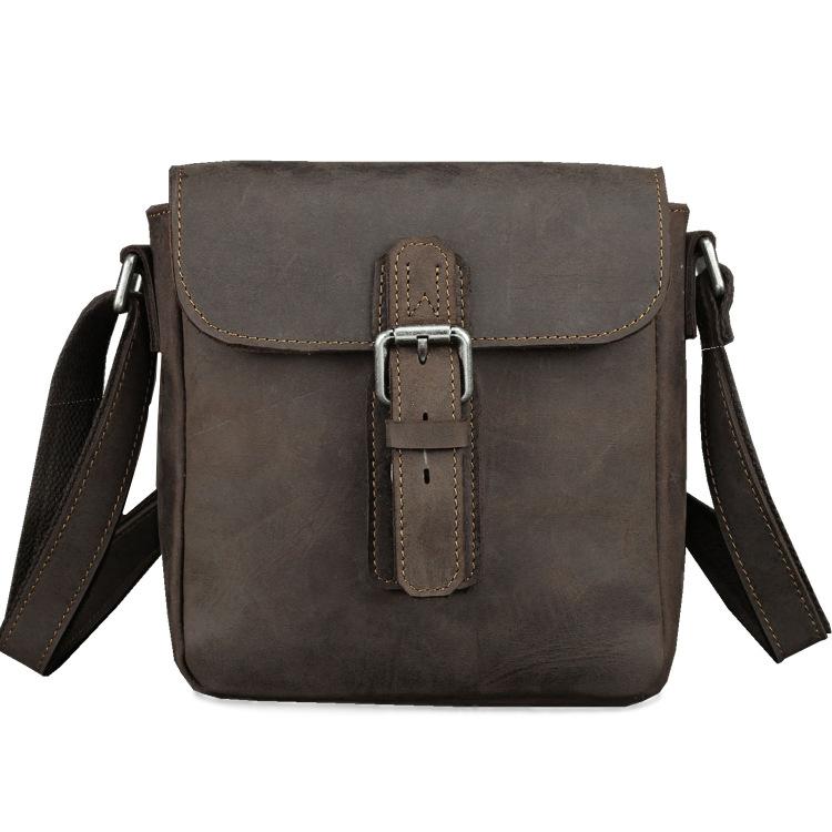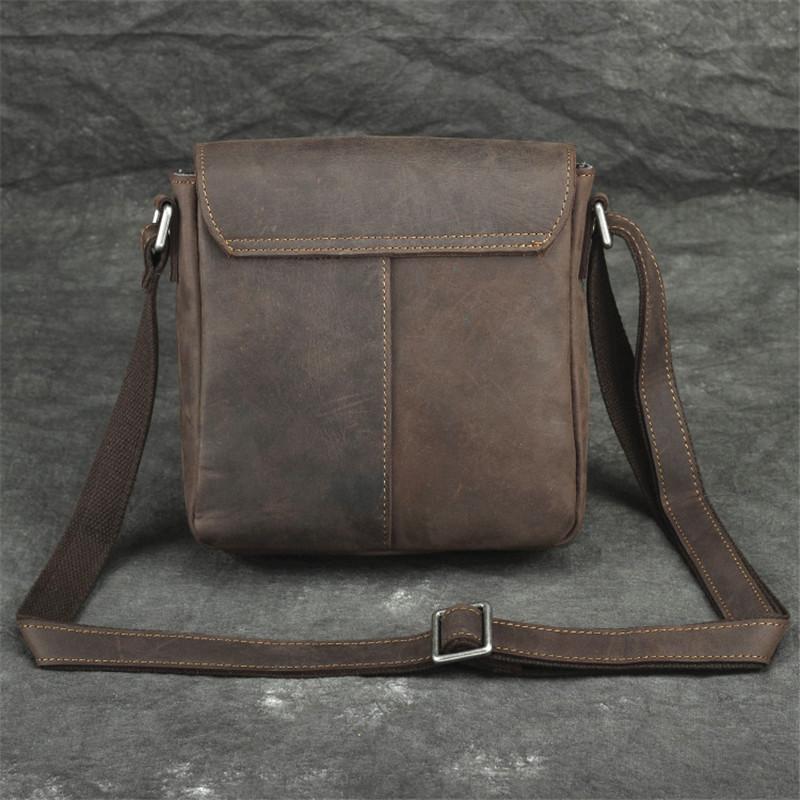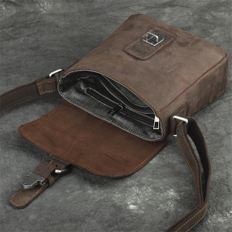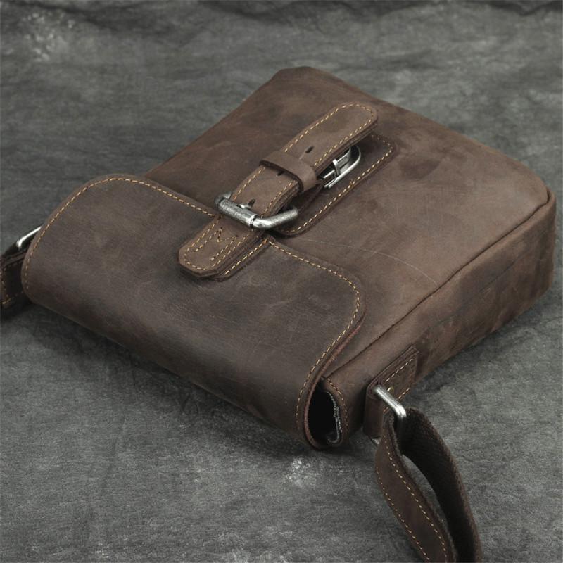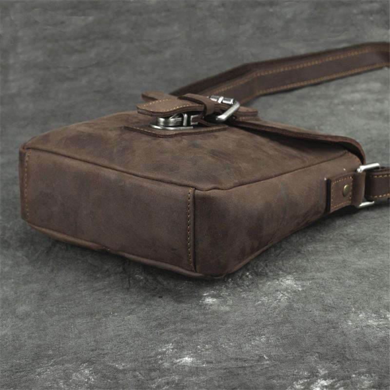 Design: Badass Dark Brown Leather Men's 8 inches Sling Bag Chest Bag One shoulder Backpack Messenger Bag For Menor MenOverview: