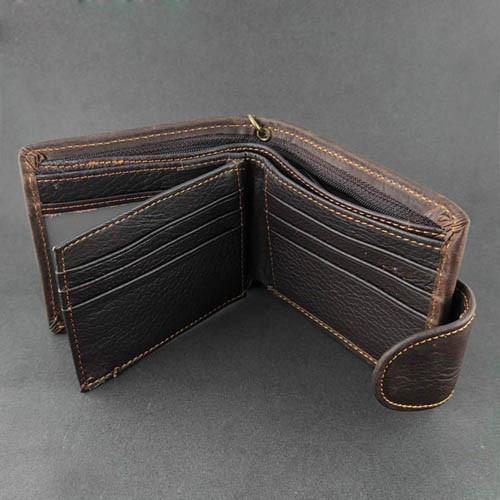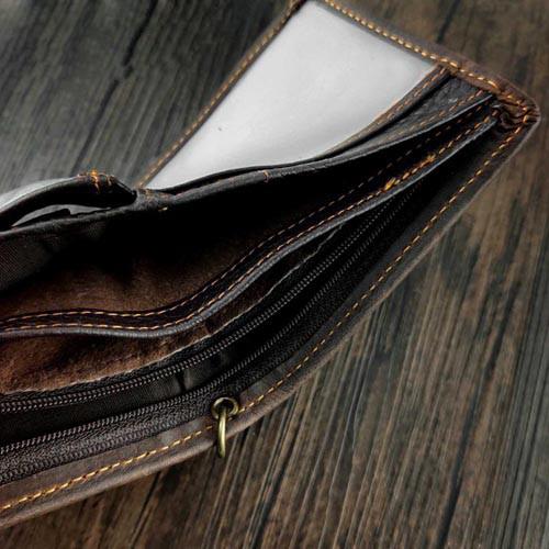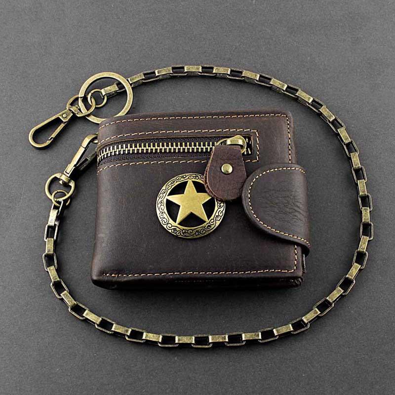 Design: Badass Dark Brown Leather Men's Bifold Small Biker Wallet Chain Wallet Wallet with chain For Men