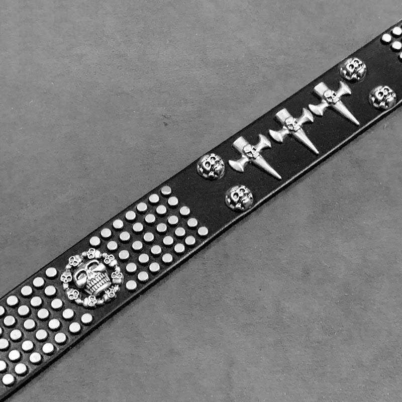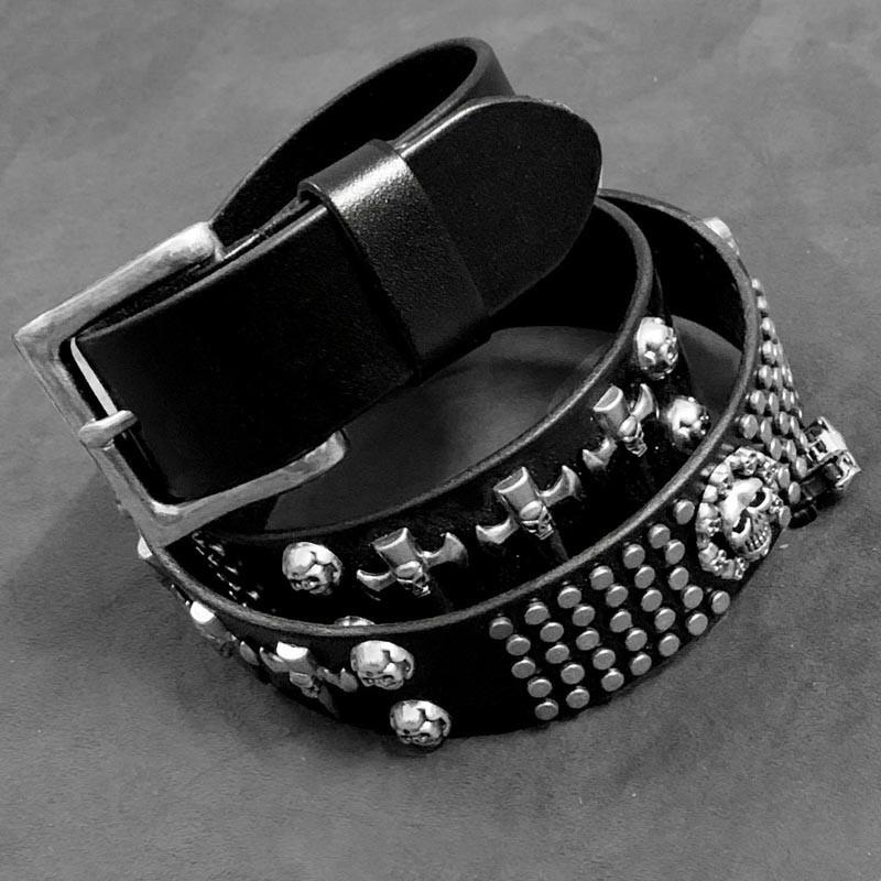 Design: Badass Leather Metal Belt Punk Skull Motorcycle Belt Leather Round Belts For Men